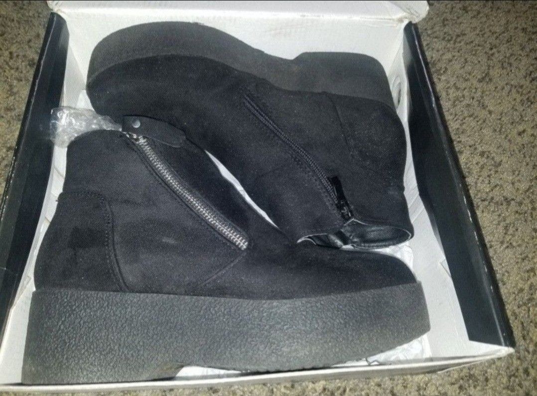 Dory side zipper suede wedge boot Ankle women size 8 black shoe Brand New Lroom