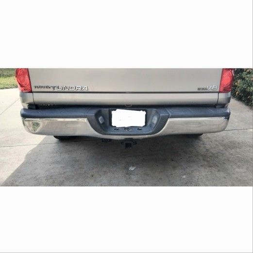 Selling this original chrome rear bumper for 00 to 06 toyota tundra fits all models. Selling it the way you see it with the plastic top trim. It has two dings in the left side i circled them so you can see they should be able to bang out pretty easy. But other than that the bumper is in good shape and has no rust. No brackets just the bumper. Asking $180 for it no trades. Toyota tundra oem sr5 limited 4wd 4x4 off road trd defensa bunper original