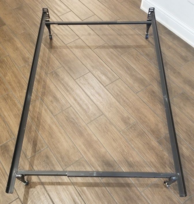 Rolling Twin Bed Frame, fair condition and clean. This twin-sized bed frame is 64" inches long. It has two parts that easily connect and when put together, making the frame is 38" inches wide (twin). The are hard plastic wheels on the bottom of each leg for easy rolling. $20 Pick up location in Katy close to Paetow High School.