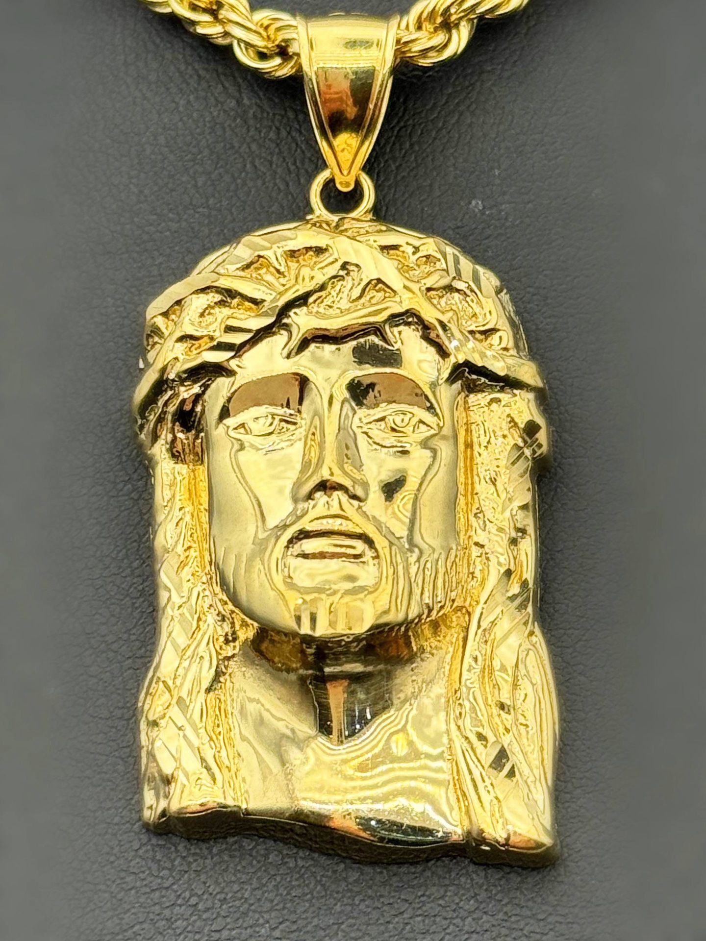 This gorgeous pendant is made of 10k solid yellow gold. Size of pendant: 2 inches length and 1 inch width. Total weight: 6.7 grams. Popular design and super stylish. Comes with nice gift jewellery box. The best choice for you! Perfect gift! β€οΈππ We buy Rolex and Audemars, patek . Do layaway in vipawn Boca Raton π₯ππΈ
