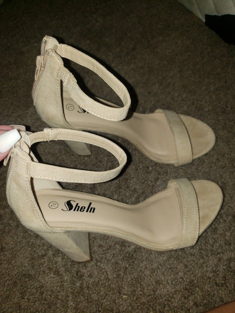 Tan heels size 7 1/2 Only worn once Pick up only, no holds