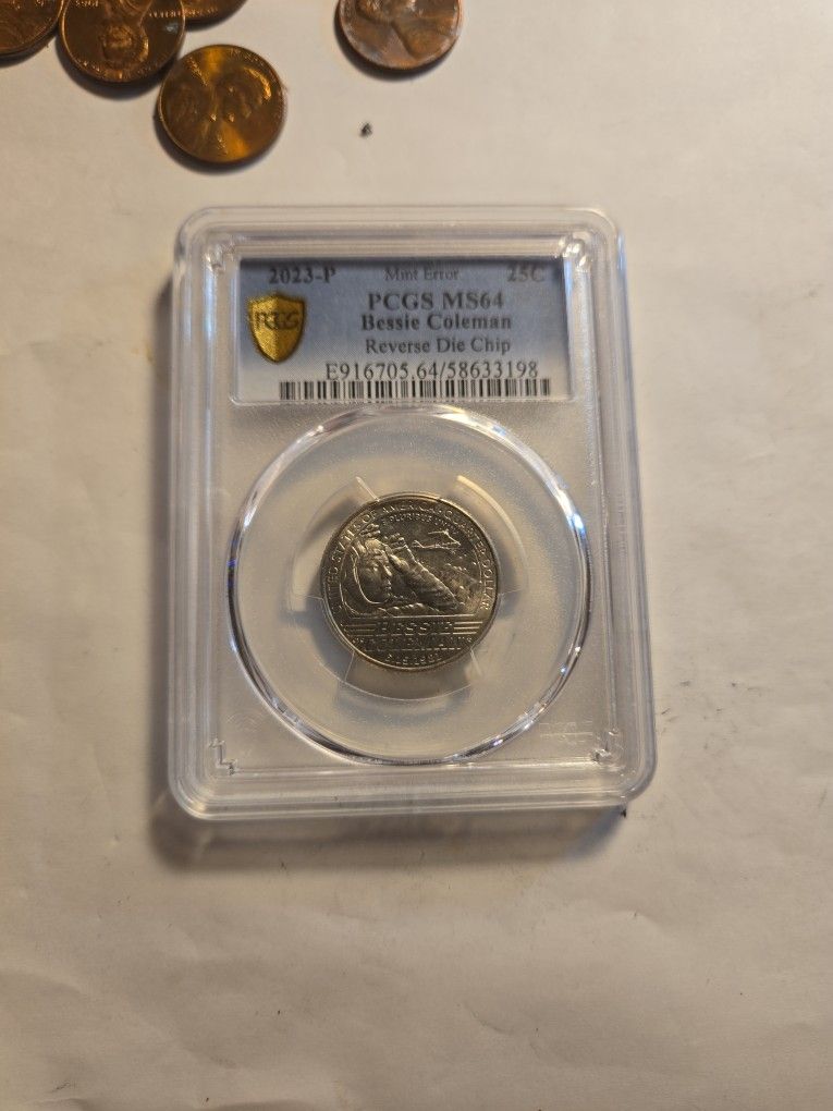2023-p Mint Error PCGS MS64 Bessie Coleman Reverse Die Chip