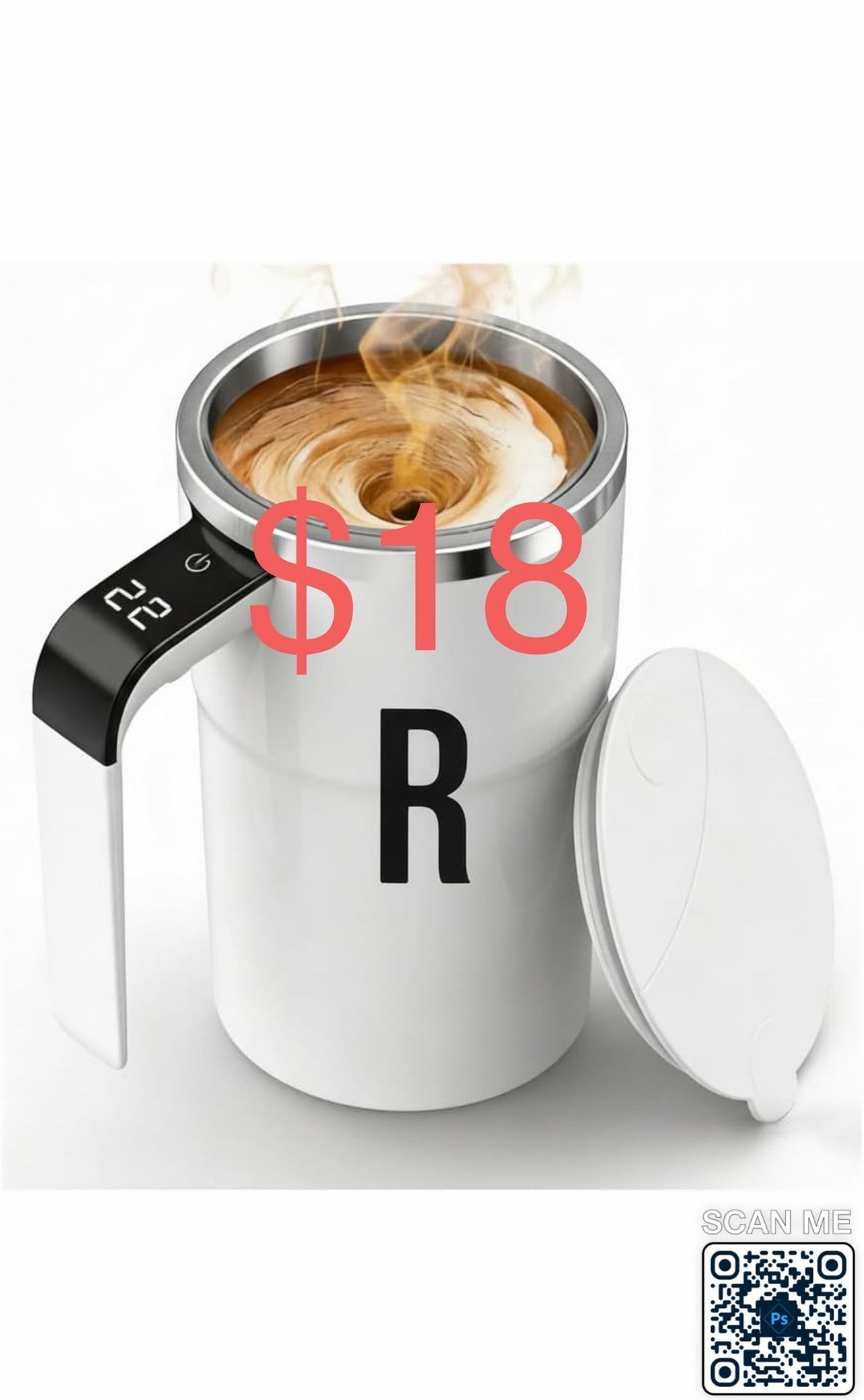Self Stirring Coffee Mug – Letter R, Rechargeable Electric Auto Mixing Cup for Coffee & Protein Shakes
