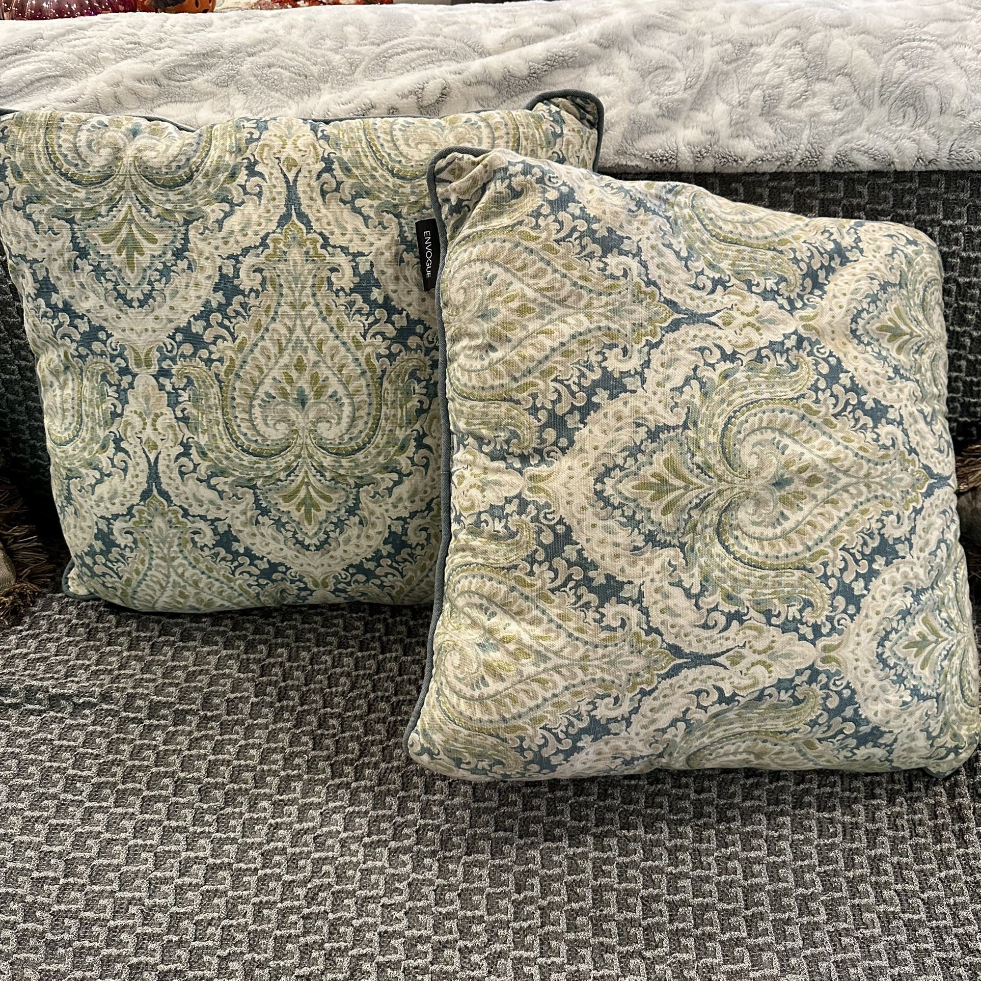 Blue and green throw pillow set. Very soft and comfy, perfect for a couch accent.
