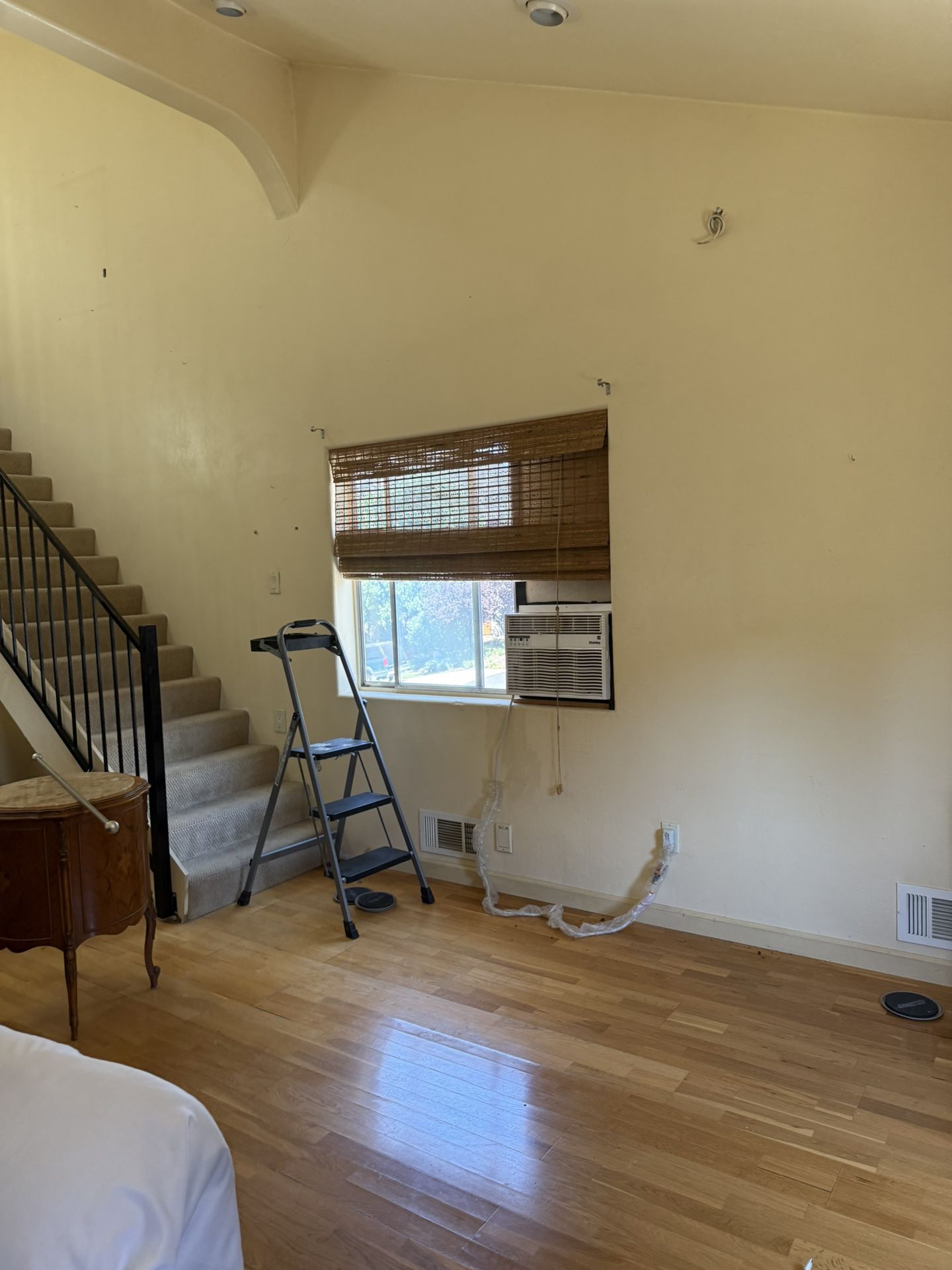 Natural woven Roman shade, likely made from materials like bamboo, reed, or jute, designed to filter light. For a total of 7 windows.