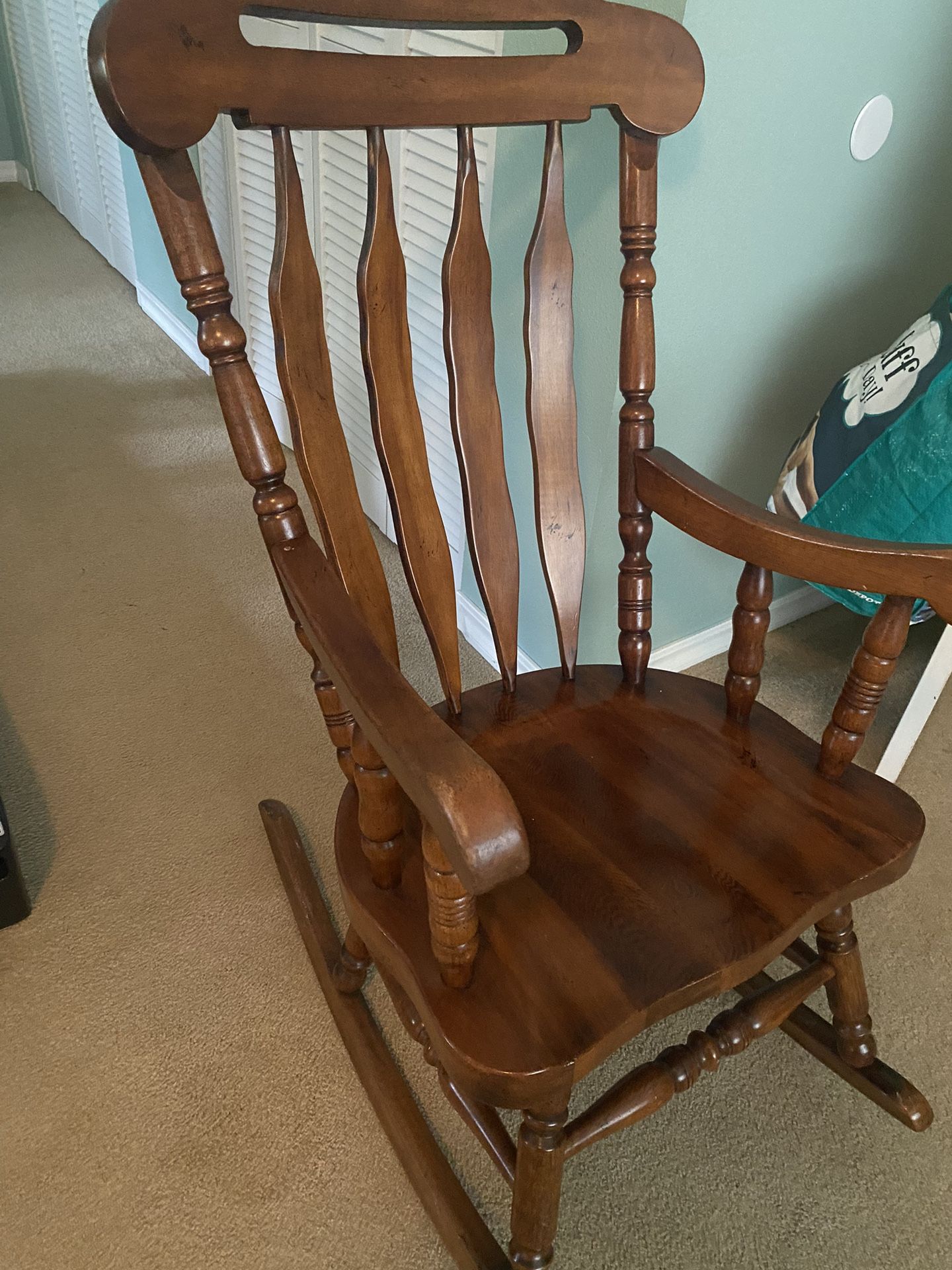 Beautiful; hate to sale this but I need the money. It’s so old my mama used to rock me in in. Perfect condition. Antique!