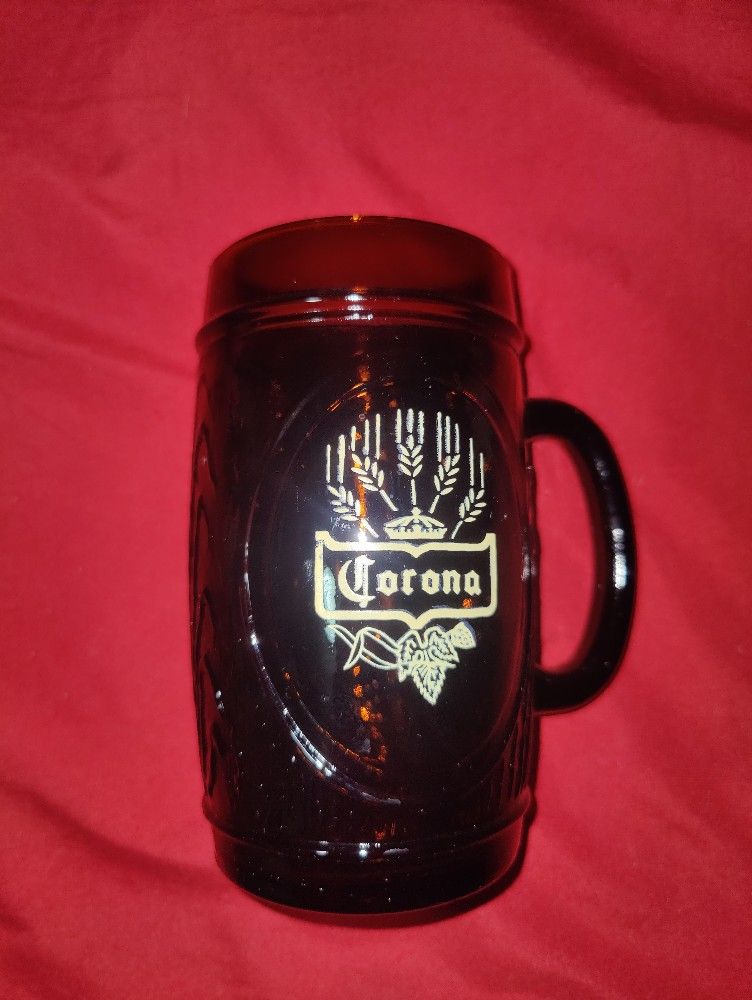 Vintage Corona Beer Glass brown Barrel Bar Mug Stein Double Sided White Logo Cup