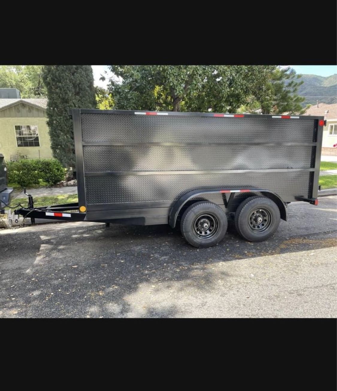 2023 Dump trailer cargo or utility trailer 12x8x4 size without ramps 6 lug 6k lb each dexter axles Heavy duty floor and diamond side walls Comes with title and bill of sale for easy registration Towing uhaul ball needed 2 5/16” Traila para dompiar lo que sea con lona o sin lona o extra están nuevas sin usar Solo un tamaño 12 por 8 por 4 de alta