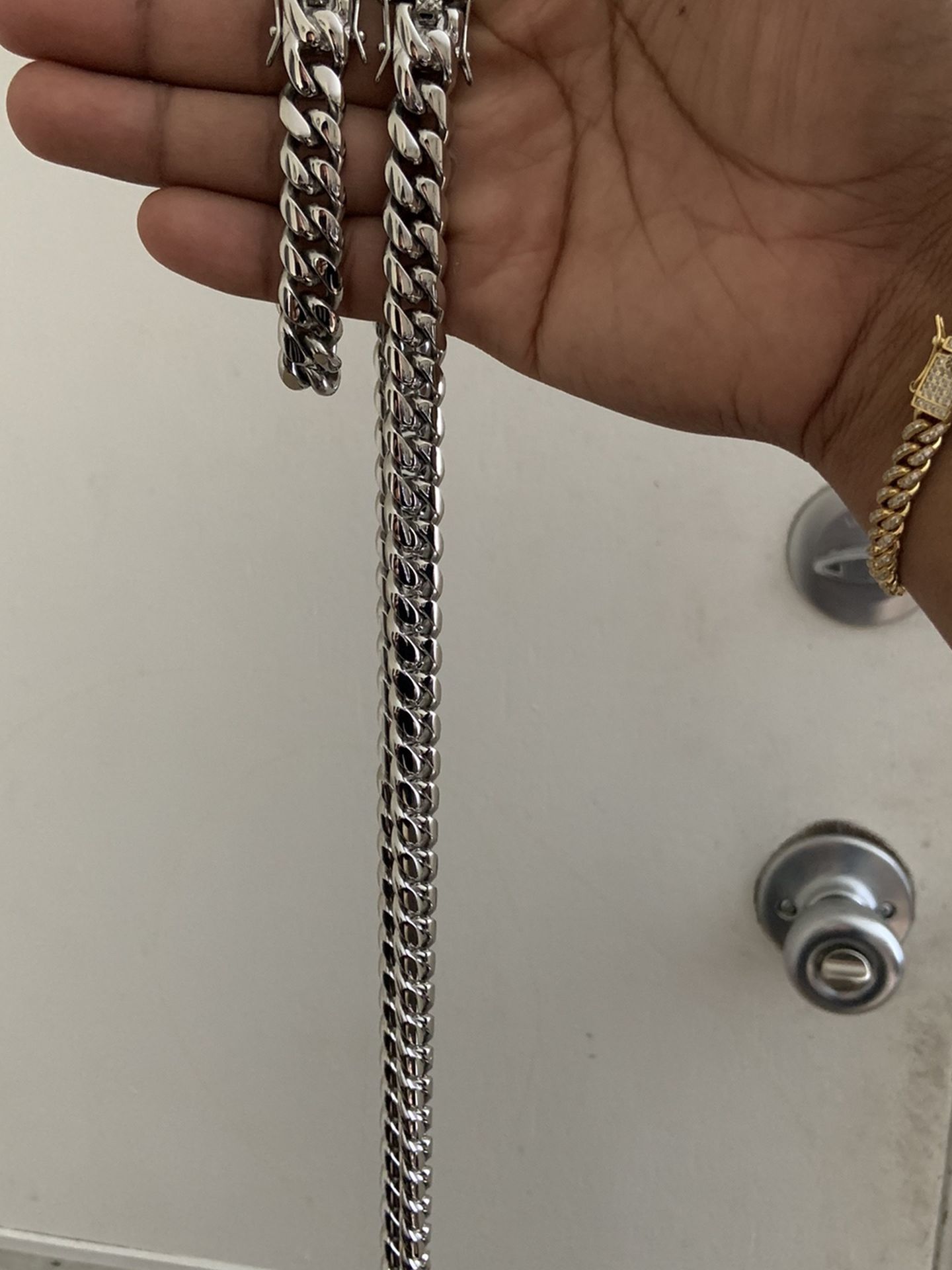 Brand new! Solid stainless steel, anti-tarnish cuban links are 12mm width 24” inch necklace bracelet 8.5” Comes with velvet bag pick up in clearwater