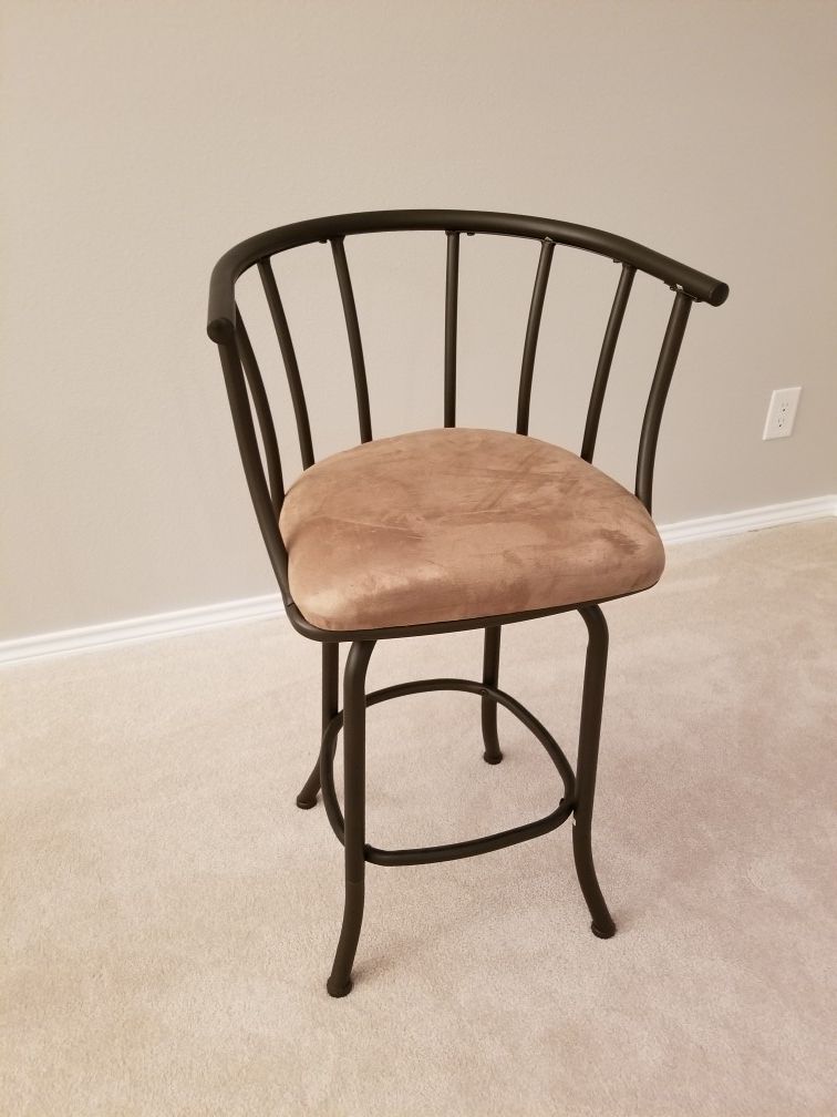 24" tall to seat, 34" tall total. 14" diameter. swivel 360 degree