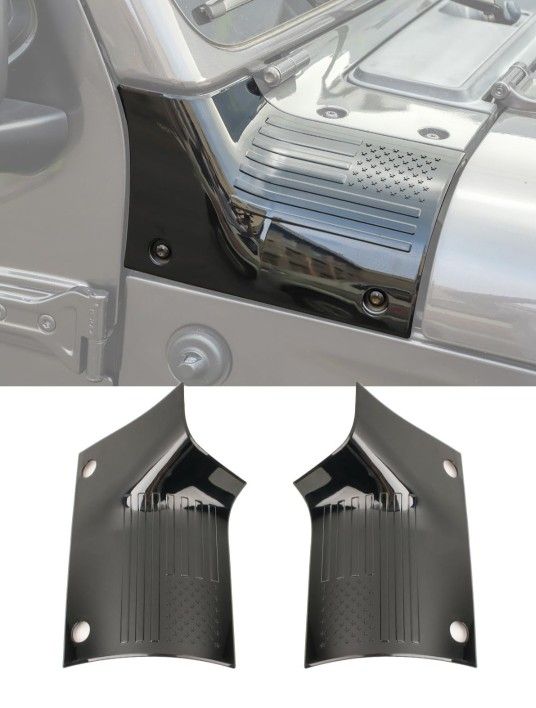 Savadicar Cowl Body Armor, Outer Cowl Covers, Corner Guards for 2018 2019 2020 2021 2022 2023 Jeep Wrangler JL JLU & Jeep Gladiator JT 2/4 Door, Exterior Accessories, American Flag, Black, Pair