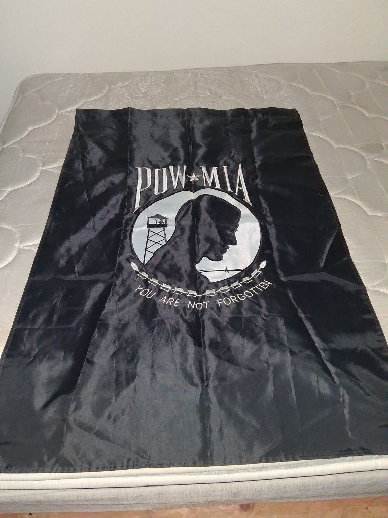 🇺🇸 Show your support and honor our veterans! 2.5×3.5 ft double-sided POW/MIA flag 100% polyester, vibrant and durable Perfect condition – never outdoors Includes grommets for easy hanging Ideal for home, office, military events, or collector’s display 💬 Local pickup Open to reasonable offers. CASH ONLY