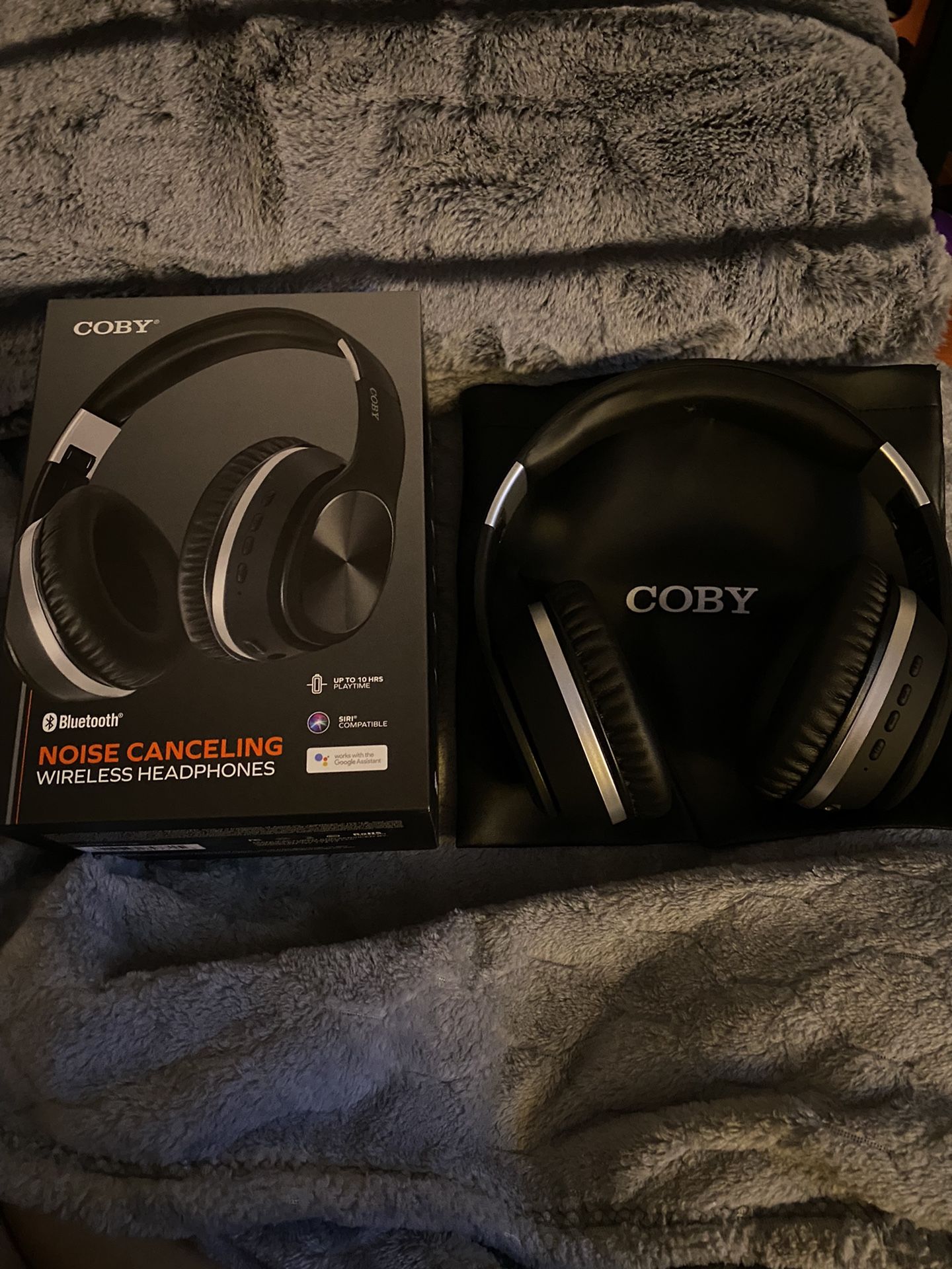 Coby Noise Canceling Bluetooth Headphones With charger and box like new works great