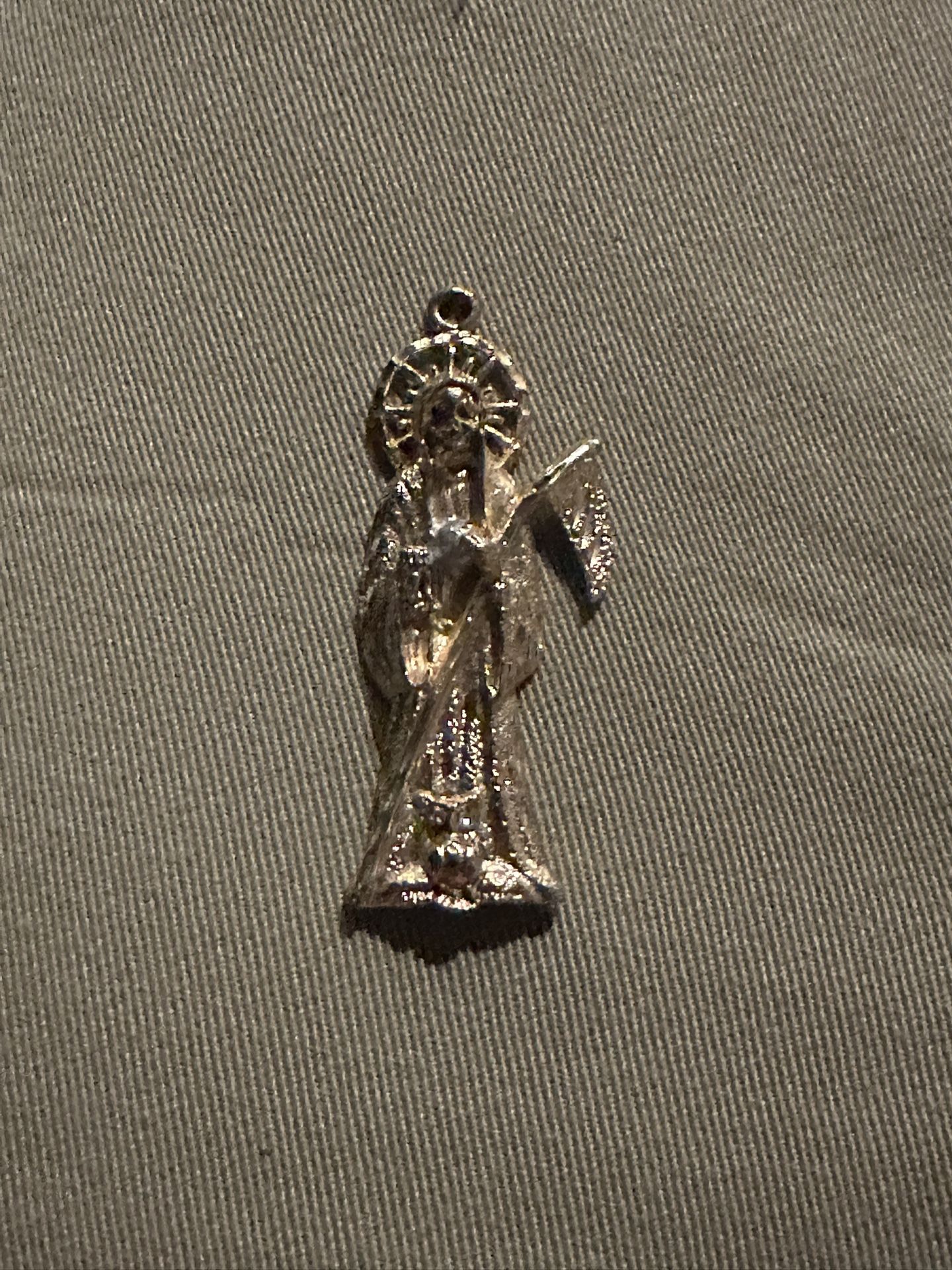 Santa muerte pendant used good but it’s in great condition missing one red gem on the eye and the hook on the top but it’s good real gold 300$ OBO NEED GONA ASAP
