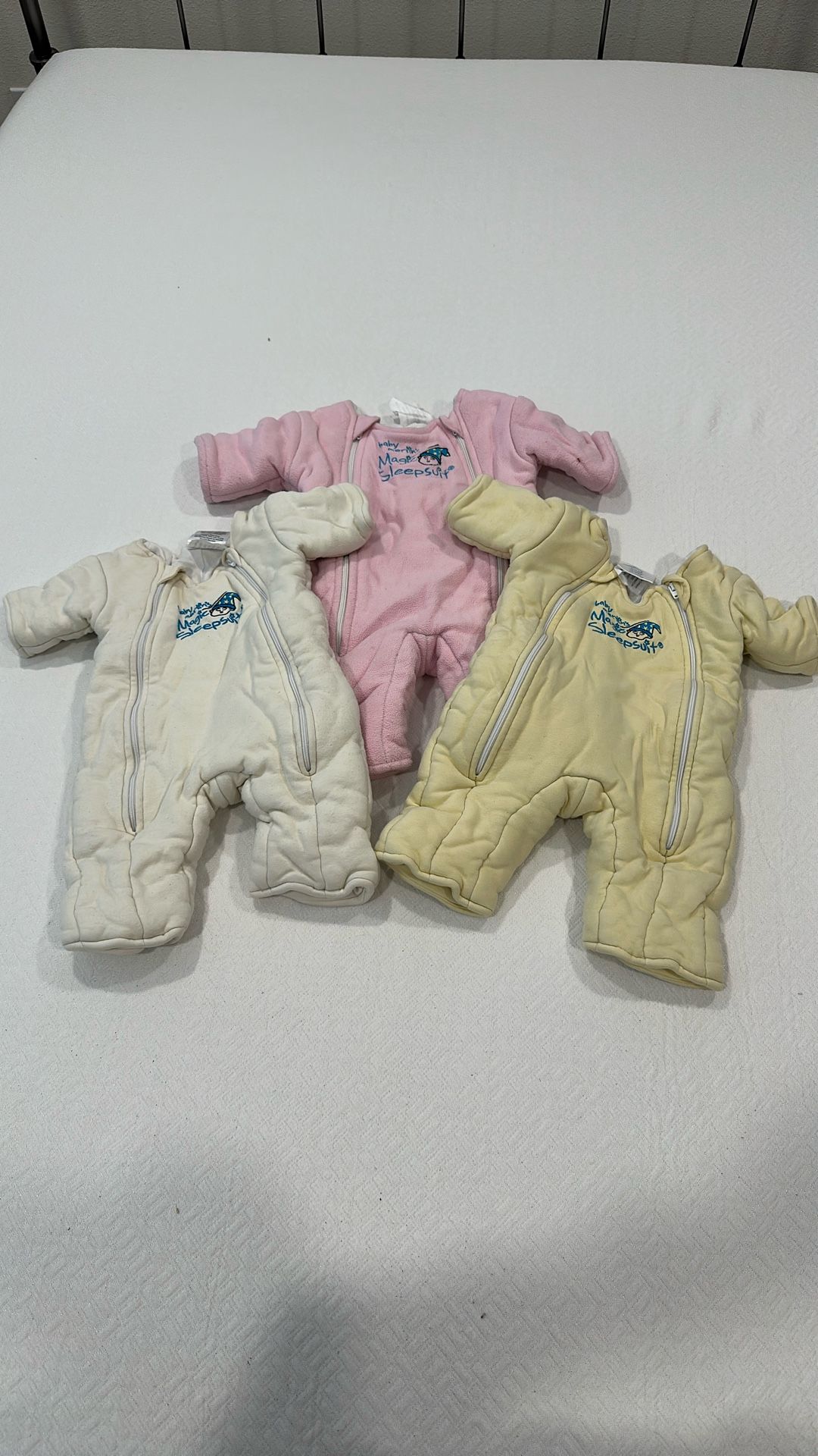Yellow suits are small. Pink suit is large. $15 each