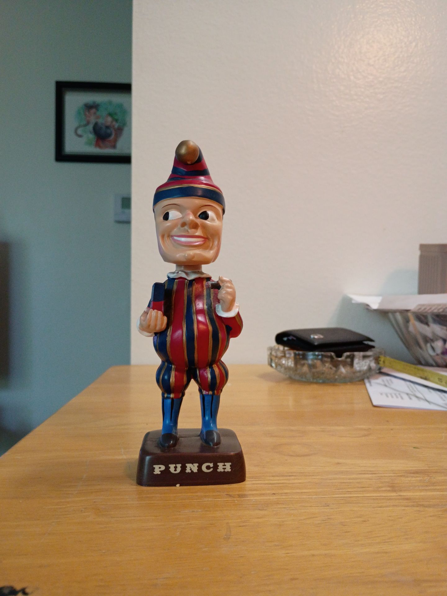Punch cigars promotional bobblehead. This is not a cheap plastic item, it is solid plaster. Comes with the original box. Great item! 7 1/2"