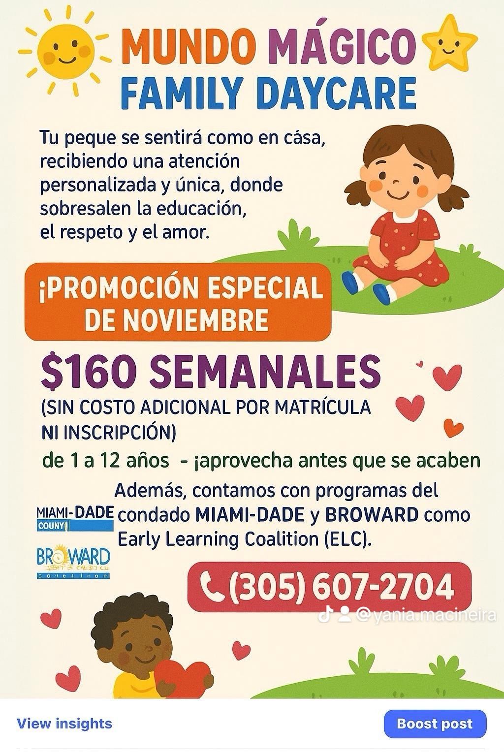 Brindamos excelente Educación en un Mundo Mágico para sus niños también abrimos los SÁBADOS para los padres que necesitan tengo mi Licencia y contrato con el gobierno para las familias de bajo recursos puedan aplicar los esperamos