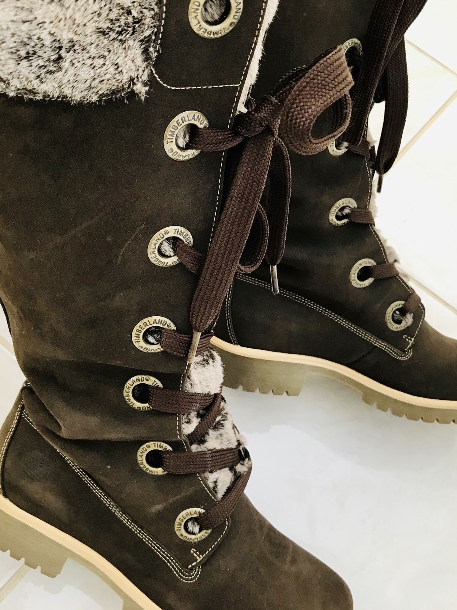 Timberland Lace Up Suede Boots With Fur