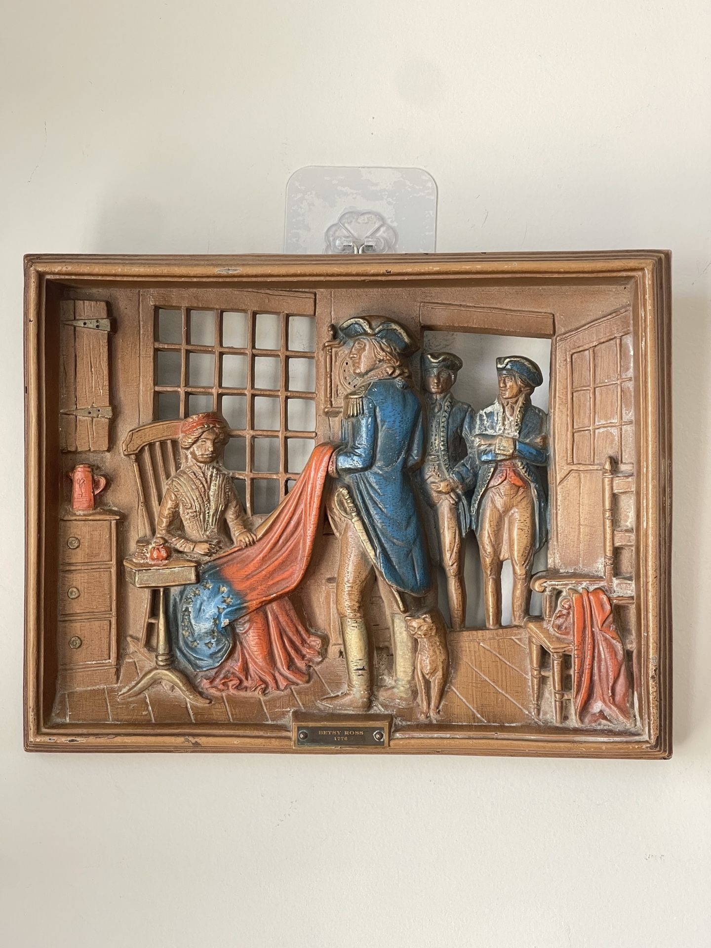 Burwood Products, Betsy Ross 1776 3D relief Plaque, # 3624, Patriotic Design