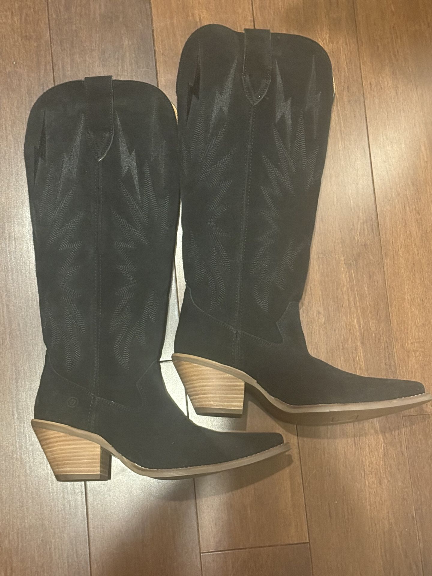 Women’s black dingo knee high cowboy boots. Bought brand new and never worn. Size 8 and very comfortable.