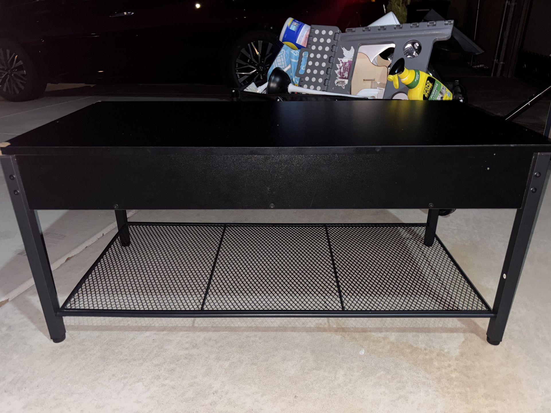 - bought used on Amazon for $80 - came with some scuffs on the corners when we bought it - top of the table lifts up for plenty of storage inside