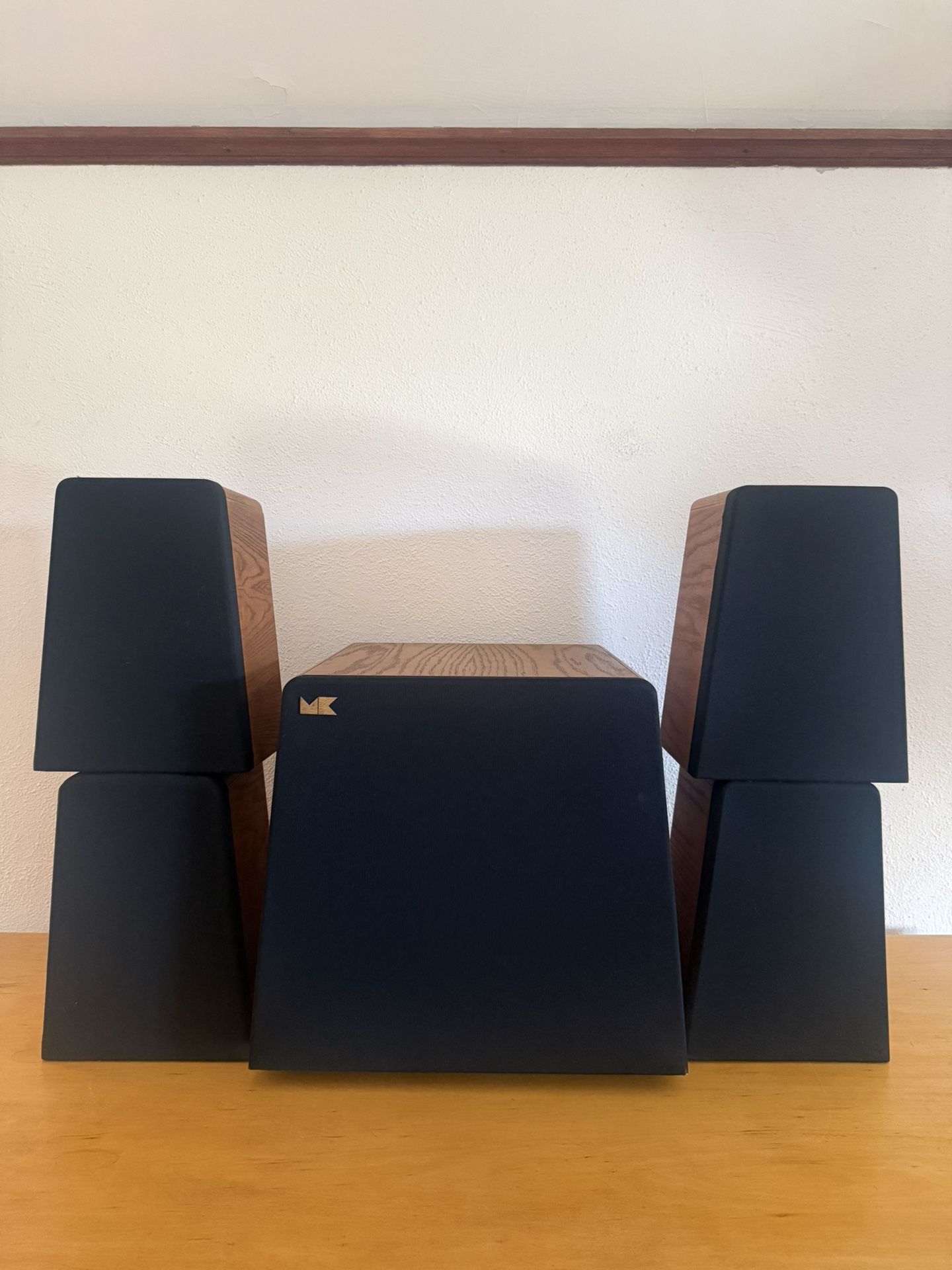 For sale is a vintage M&K (Miller & Kreisel) sound system from the 1980s, known for their high-quality, audiophile-grade sound and classic home theater performance. Includes: • 1 × M&K V-2B Subwoofer • 4 × M&K S-2B Speakers Condition & Functionality: All components have been tested and are fully functional. The subwoofer and all speakers produce clean sound. These were stored indoors for many years and show normal cosmetic wear consistent with age, but no major damage. As with most vintage audio equipment, a future owner may choose to upgrade or recap components to suit personal preferences, but the system is working as-is and ready to use. This is a great opportunity for an audiophile, vintage audio enthusiast, or someone looking for classic M&K sound.