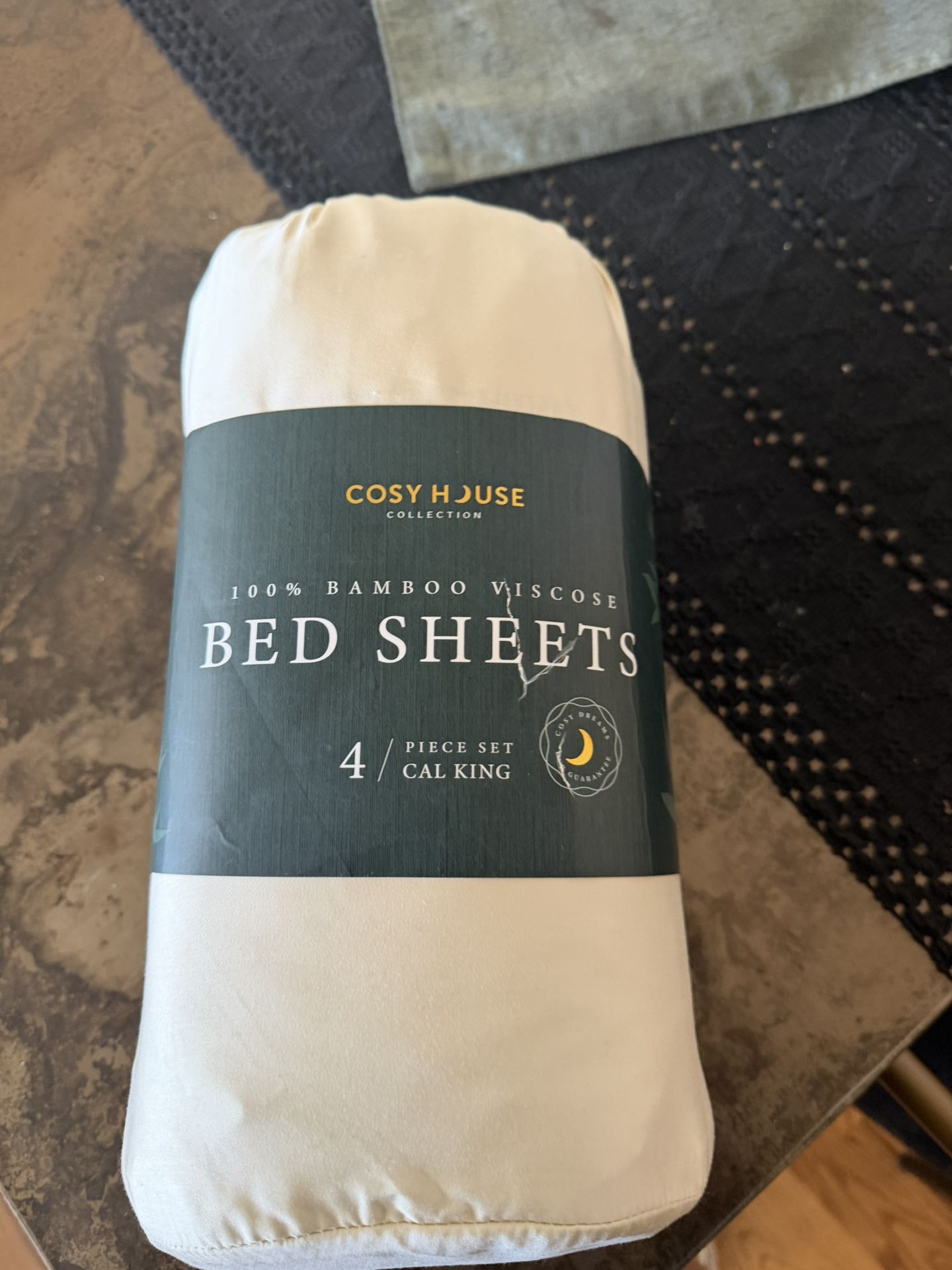 Cozy house 100% bamboo viscose bed sheet set size California king in cream. Includes fitted sheet, flat sheet and 2 king size pillowcases. Never opened. Pickup in Brentwood 90049