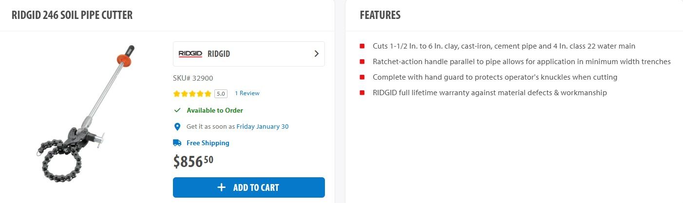 Never Used Rigid Mo. 246 Pipe Cutter