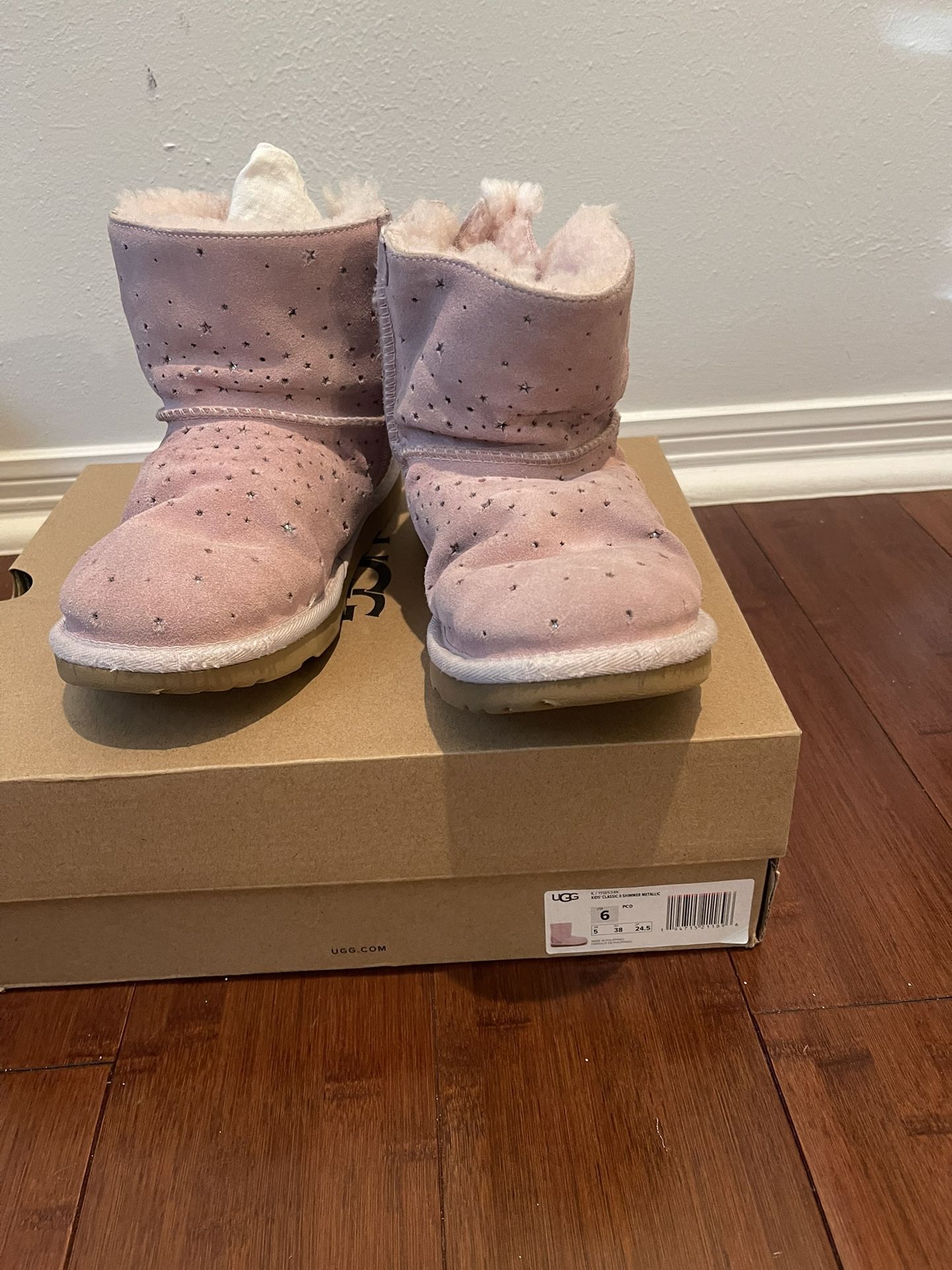 Uggs Boots Gently Used Size 6 Light Pink Color With Silver Bowl At The Back