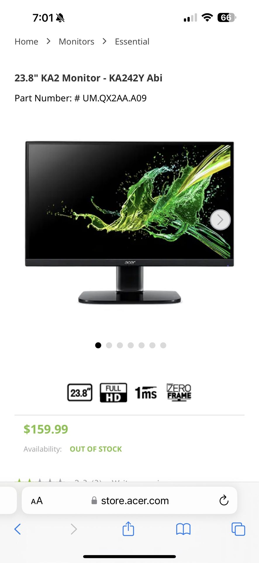 23.8" KA2 Monitor - KA242Y Abi Used but good condition I have a couple so let me know if you want more than one
