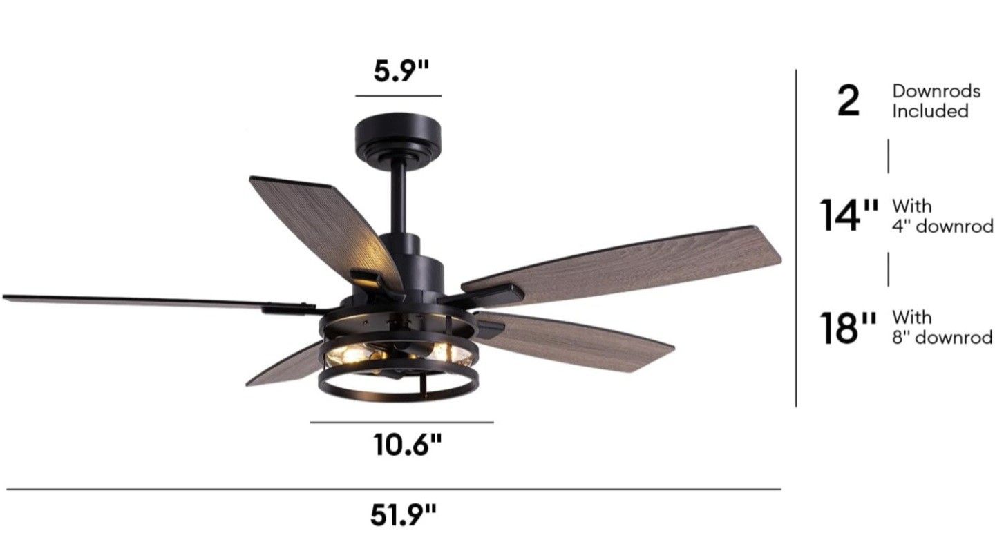 tinkoso Ceiling Fans with Lights and Remote Control, Ceiling Fan for Bedroom Living Room (52 Inch Black- Electric Fan Design Ceiling Fan Style Industrial Power Source Corded Electric Room Type Bedroom Mounting Type Ceiling Mount Material Metal this product never installed before and is Sold as is