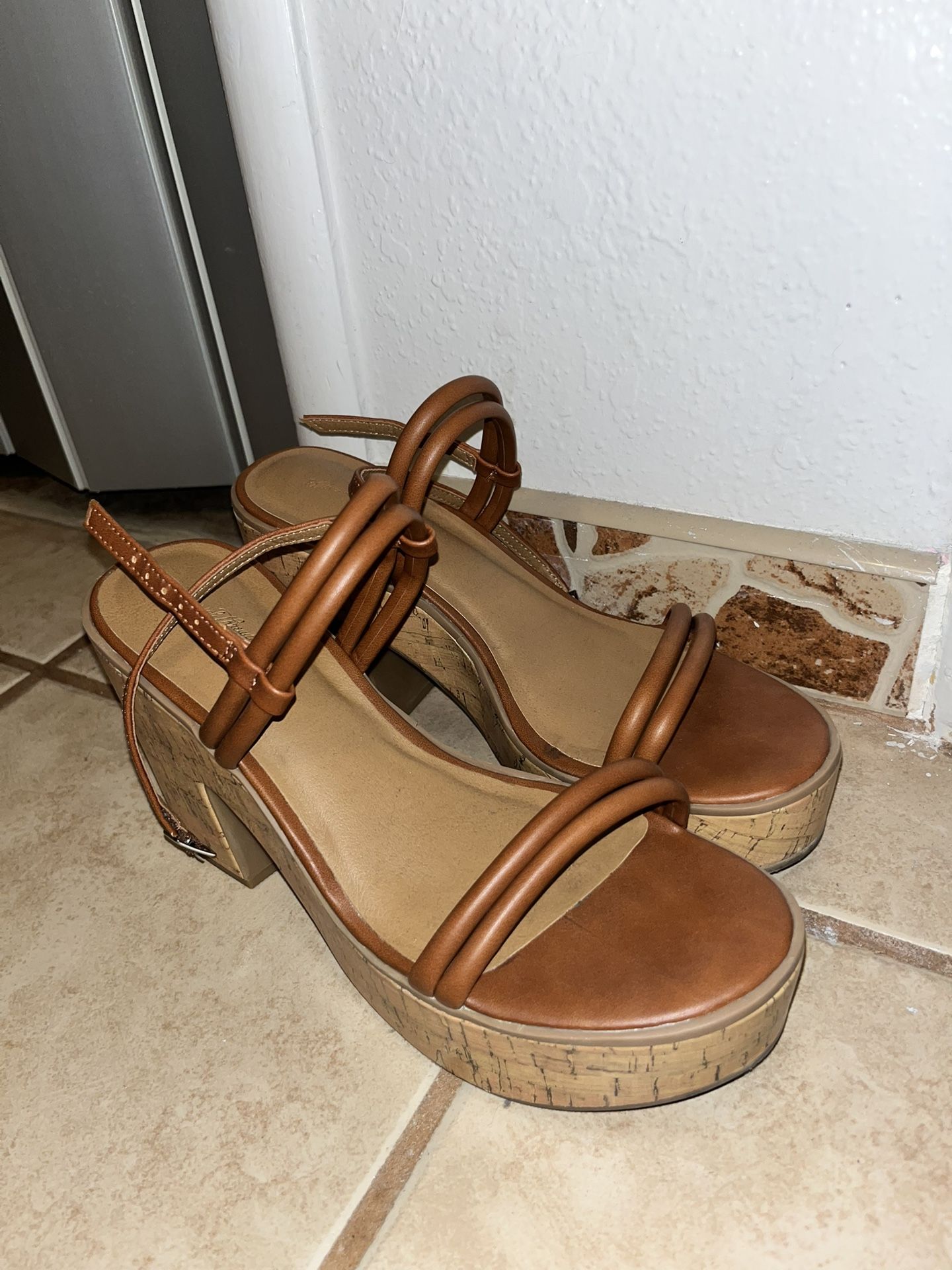 Step out in style with these elegant tan platform sandals. Perfect for any occasion, these shoes offer both comfort and sophistication.