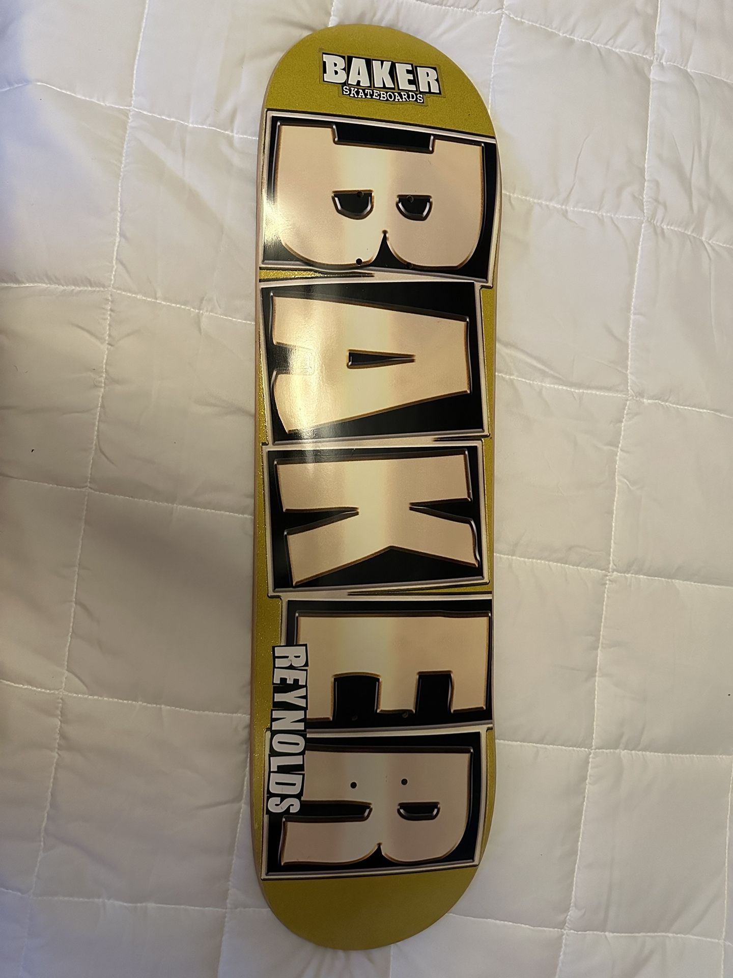 Brand new Baker Reynolds Deck size 8.25 Bought it for 80$ asking 70$ OBO. Selling it because I stoped skating due to an injury. Never skated it, also selling. Trucks and wheels.