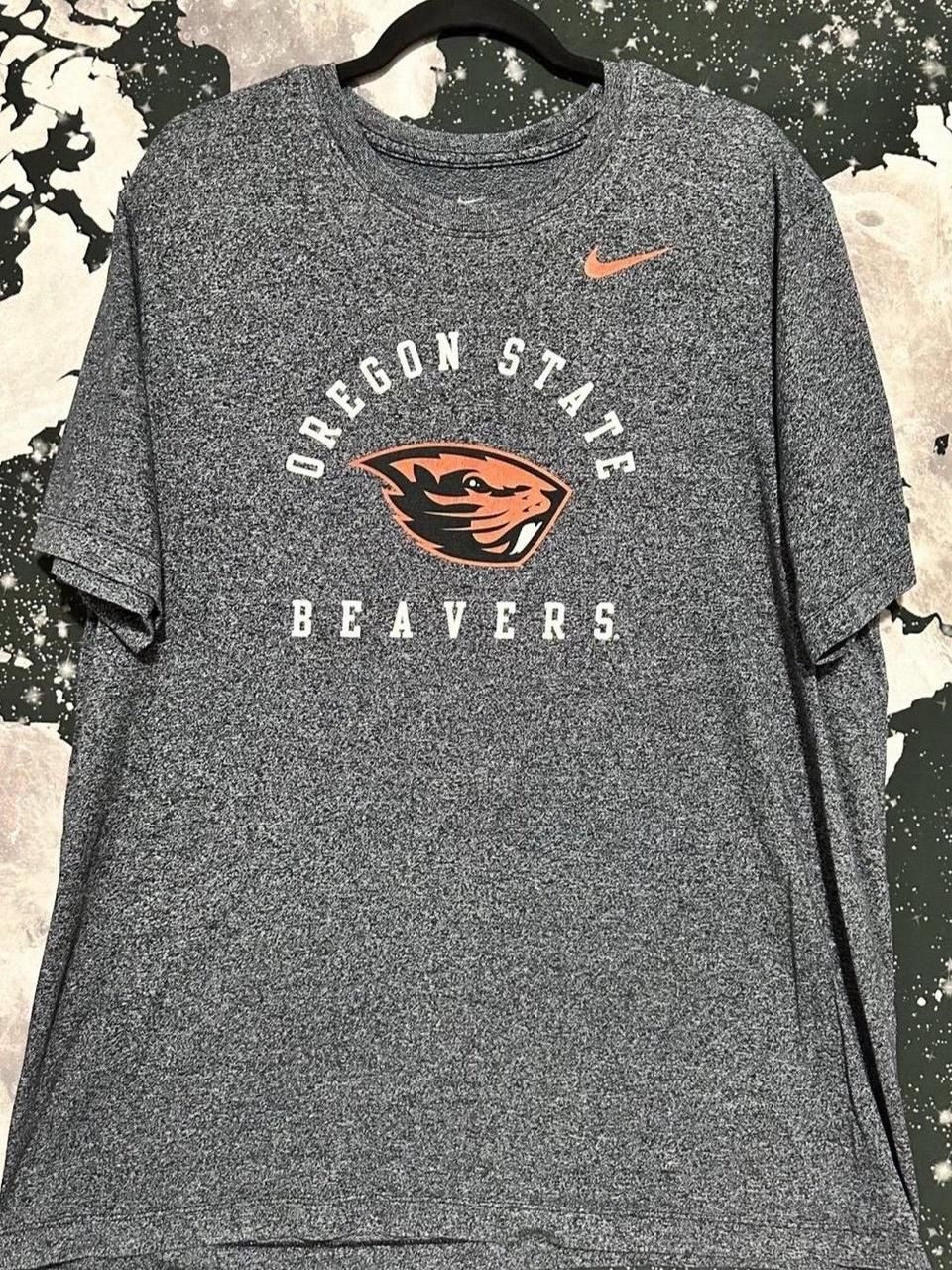Nike University of Oregon State Beavers athletic sports campus performance shirt, color is grey with front college school team logo. Preowned condition Sz. XL Measurements (24”x30”)