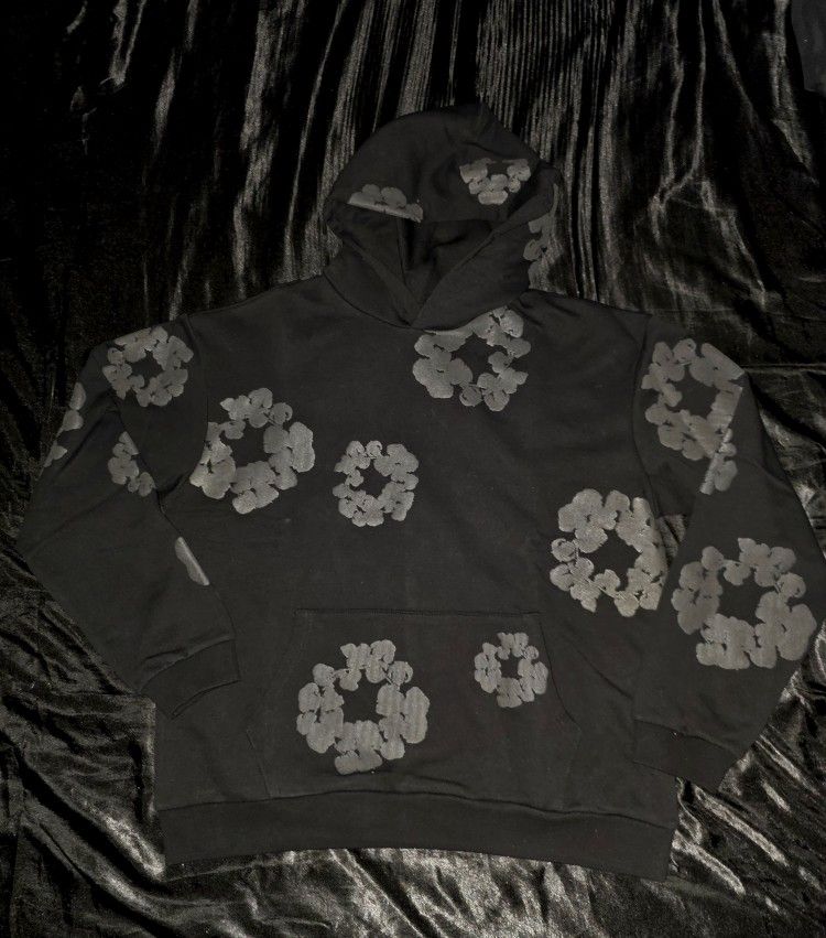 Denim Tears The Cotton Wreath Hoodie, Black Monochrome, Sizes, S, M, & L