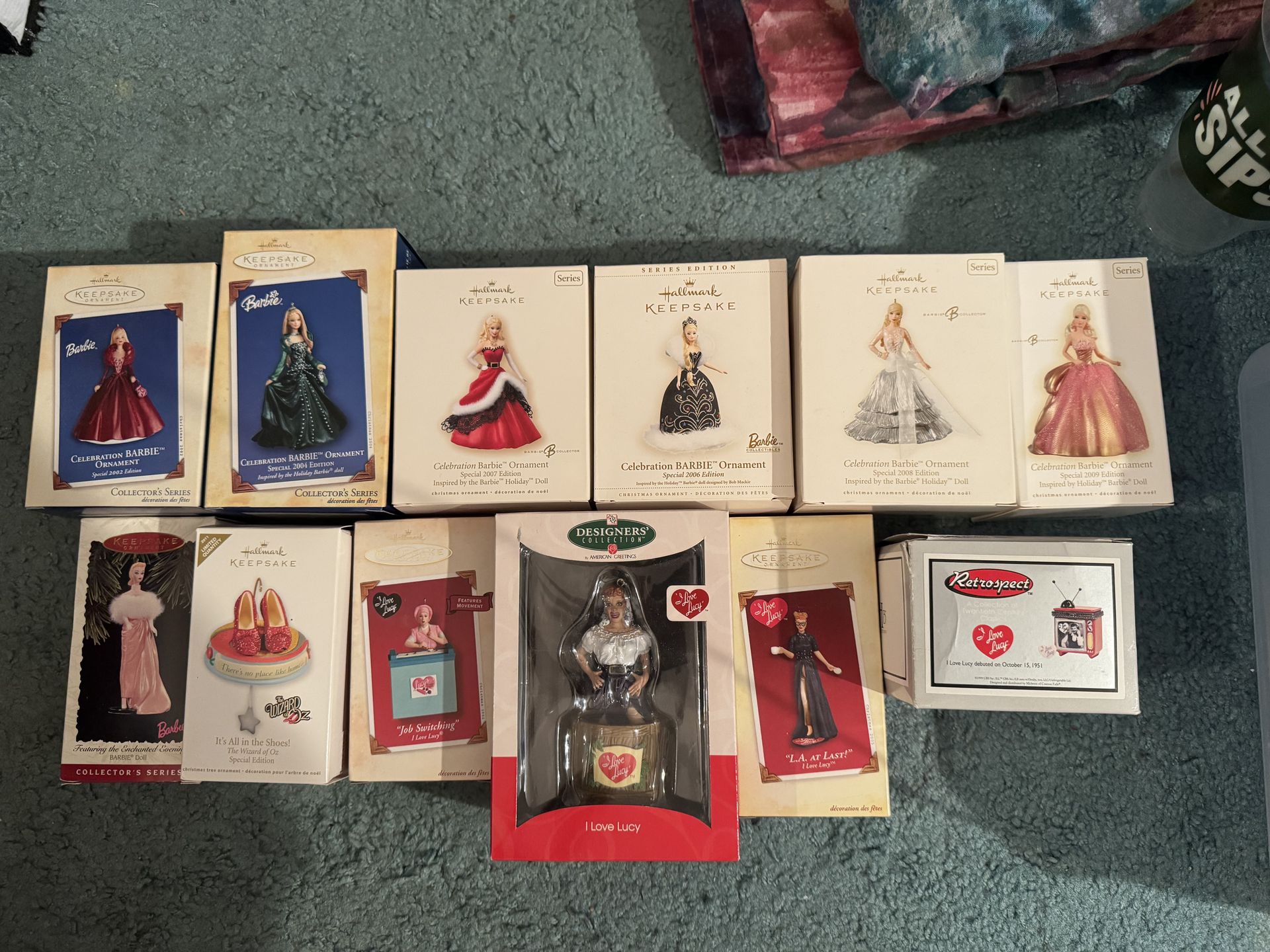 Barbie & I love Lucy & Elvis & wizard of oz Christmas ornaments