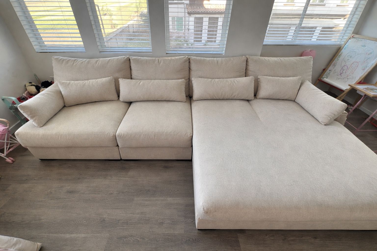 My space is too small for this size of couch, so I’m looking for a smaller piece. It is in good condition Originally $1,875. Couch has removable covers and pillows as well if u ever need to wash them. Super comfy! Please message me if you would like additional pics.