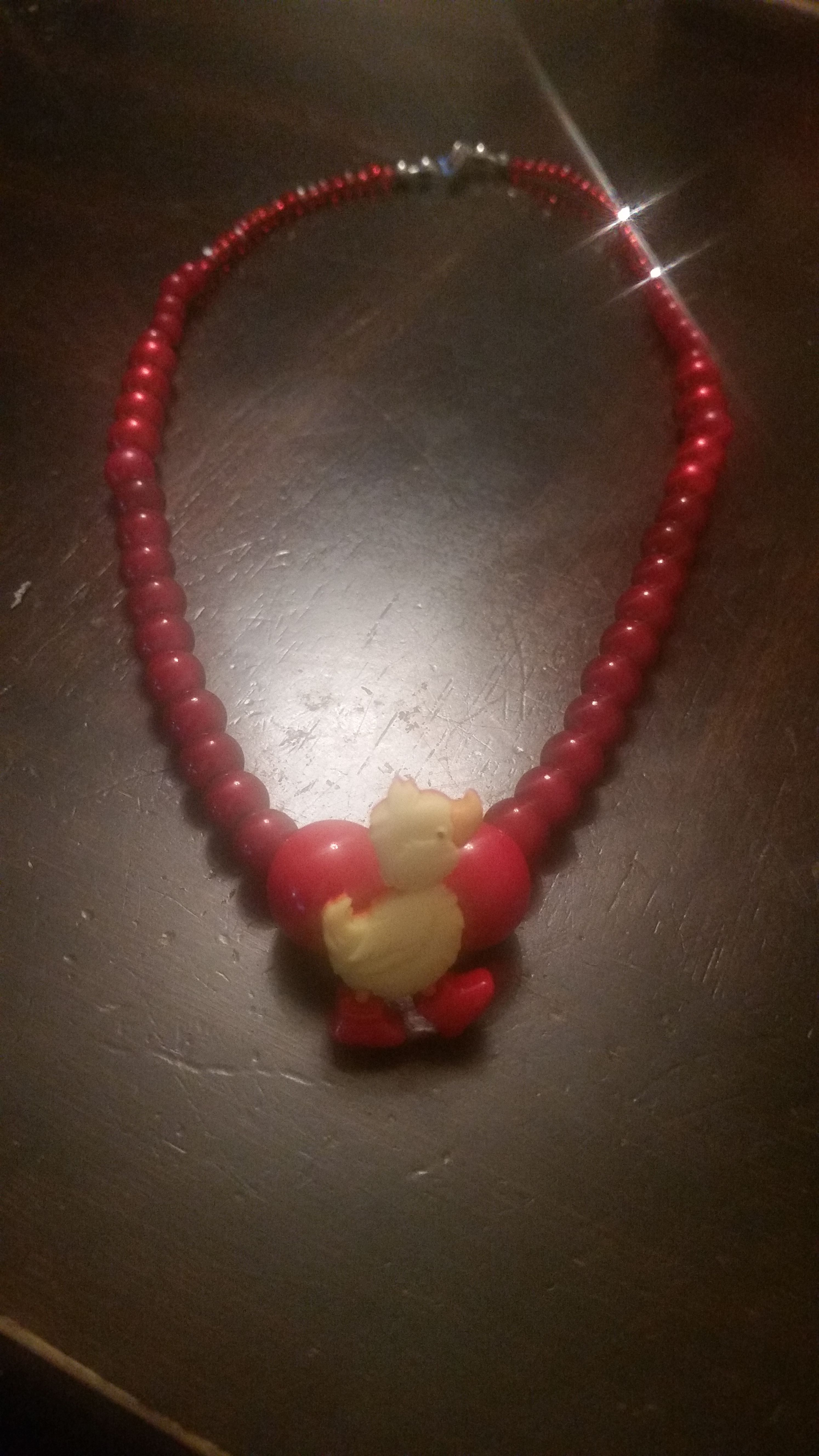 1 of a kind super cute red beaded choker style necklace with a rubber ducky in rainboots charm as the center Please check my page for other items for sale as well