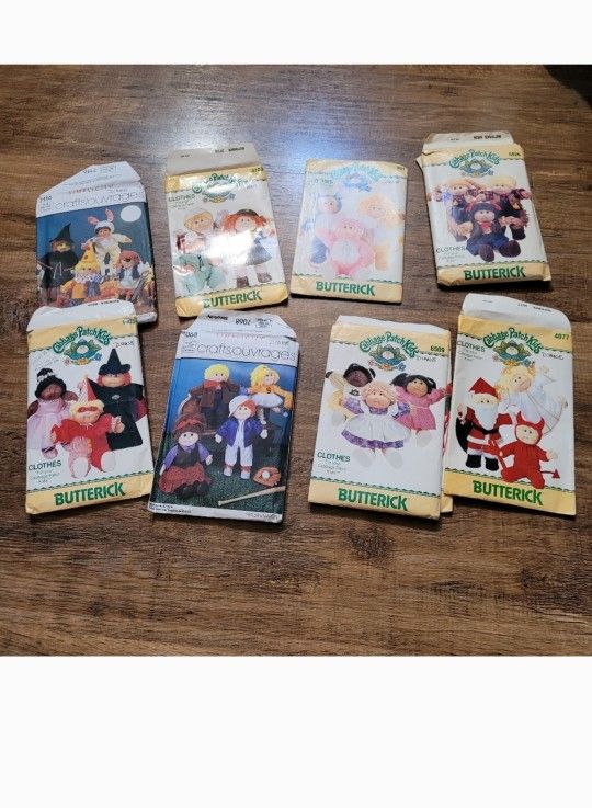 Located in Tracy. So in patterns for cabbage patch clothes. Cannot confirm that the exact patterns are in each package but I would assume so