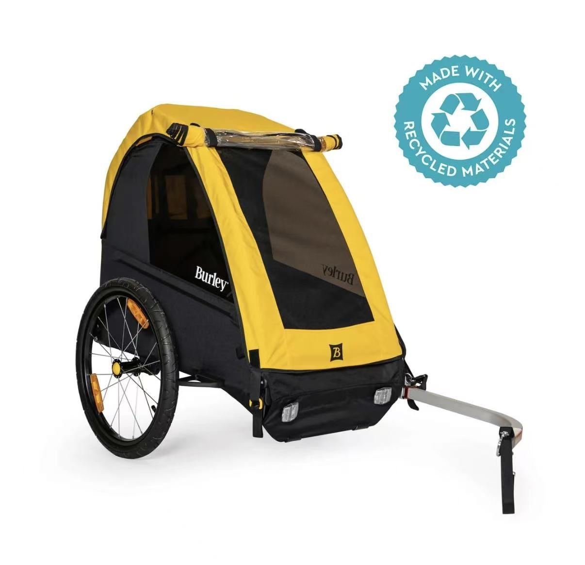 The Burley Bee, our original bike-only trailer, is a long-standing favorite for biking with children. With UV-protected windows, front and rear reflectors, and a 5-point harness, the Bee takes both safety and comfort seriously. And with its simple hitching system, the Bee makes it easy to enjoy family bike rides any day of the week. Available in single or double seat models.
