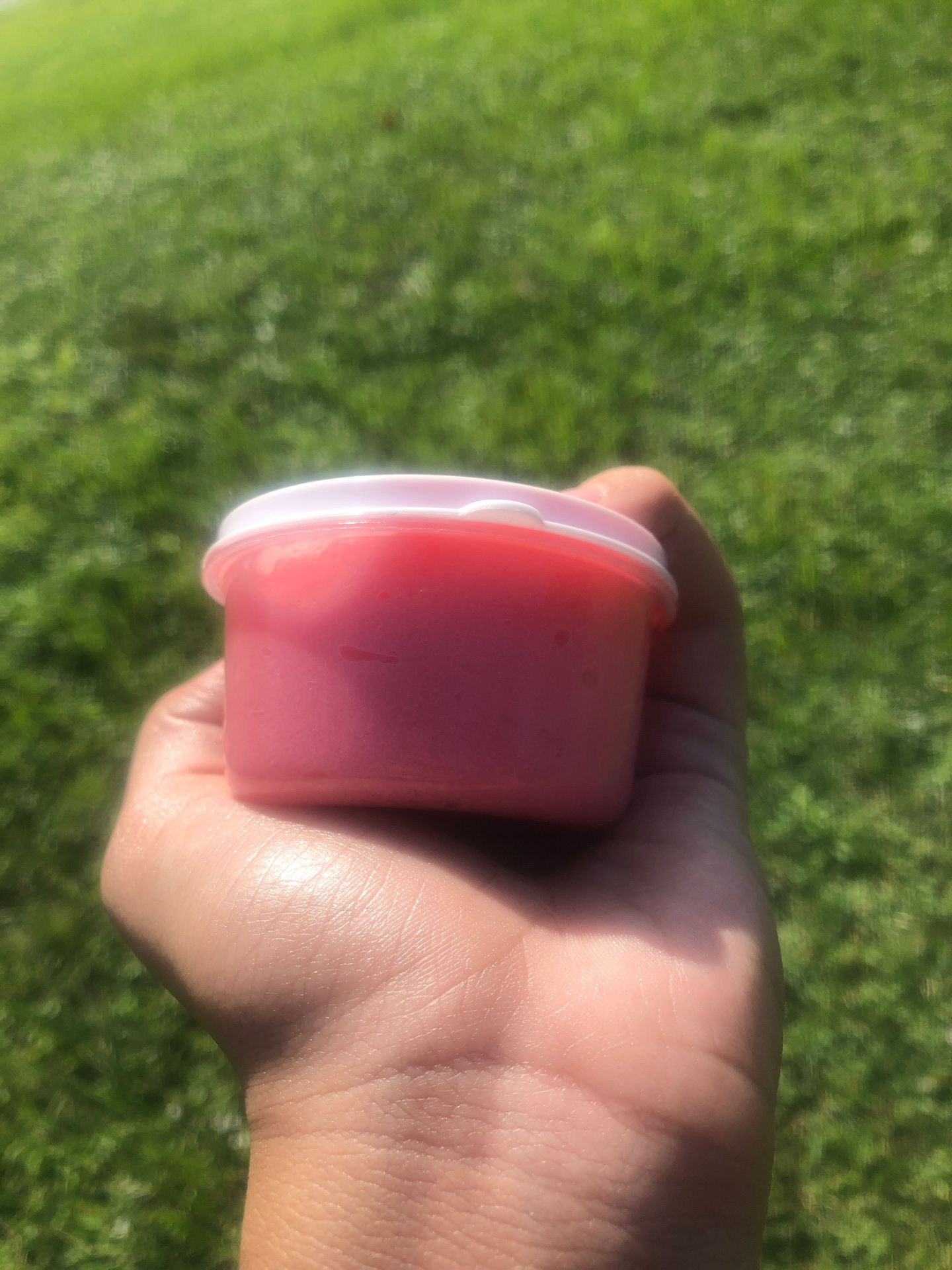 Neon Strawberry Bloom, tastes and smells like strawberry Does not stain your lips. Used for: Used to make your lips soft before putting on lip gloss, lip stick, or chapstick. Tip: Scrub it on your lips. Ingredients: Sugar Strawberry flavoring Food coloring Coconut Oil