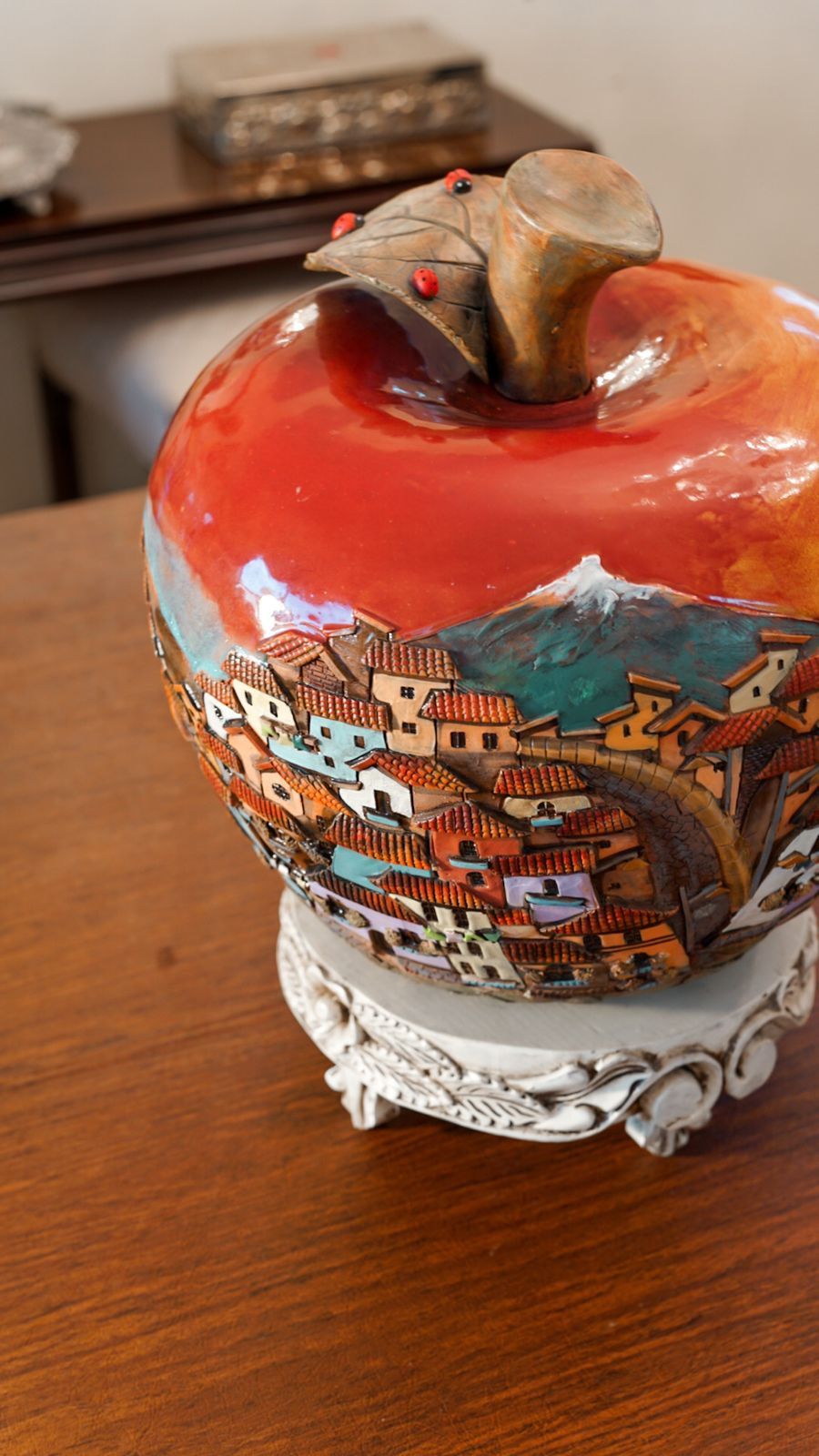 Ceramic apple with city relief - imported from South America by Brazilian artist Patricia Carrera