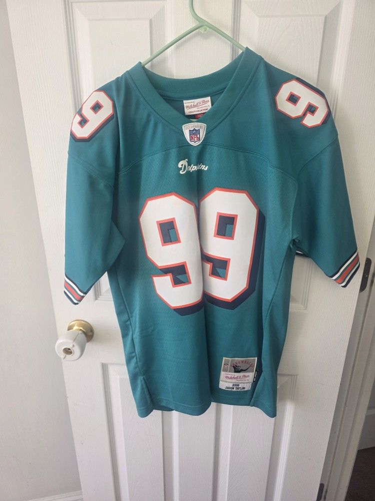 Mitchell & Ness Miami Dolphins Jason Taylor #99 '06-'07 Legacy Jersey in teal.