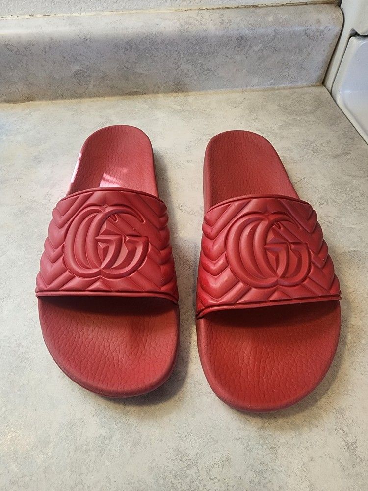 In great condition, Red Gucci Matelaase slides for men side size 9. Firm on price. $90
