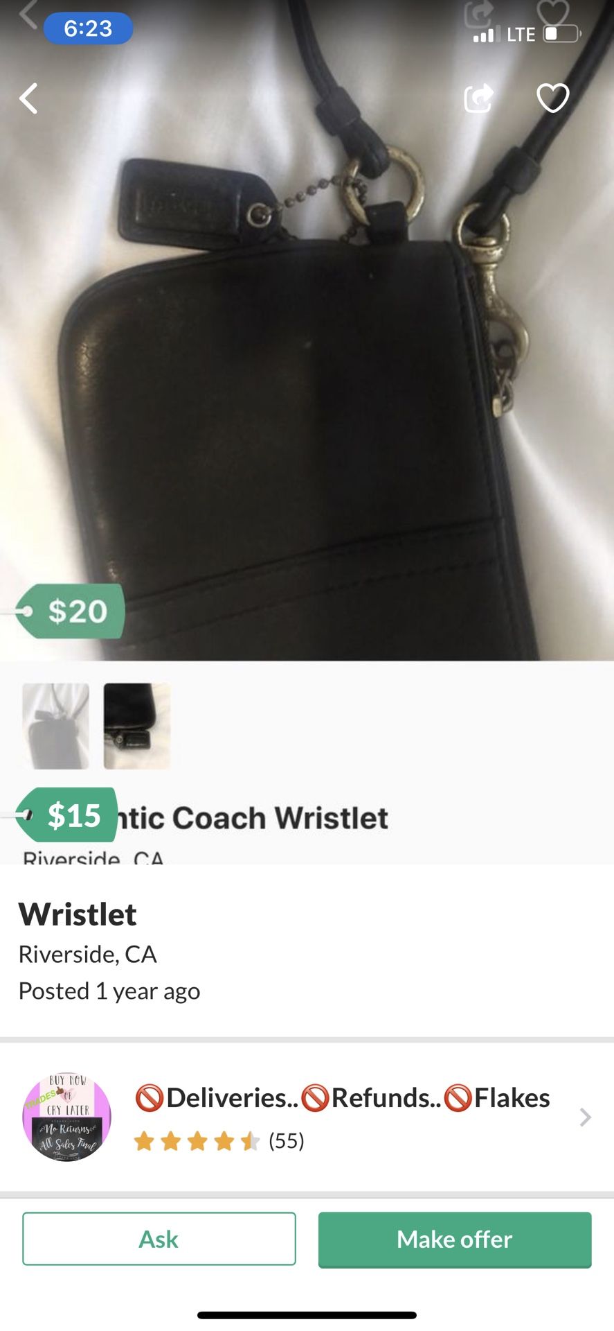 Authentic coach clutch wristlet
