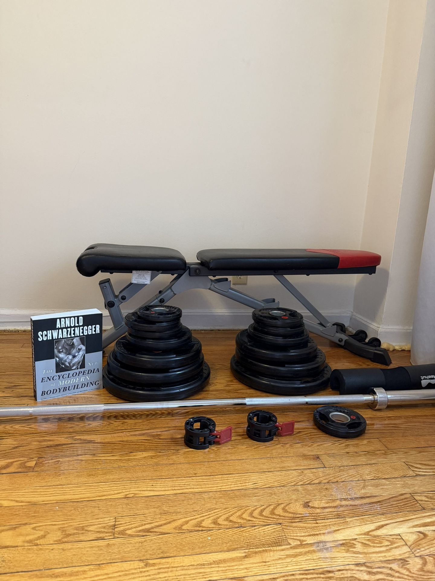 Selling my Olympic barbell, weights and bench