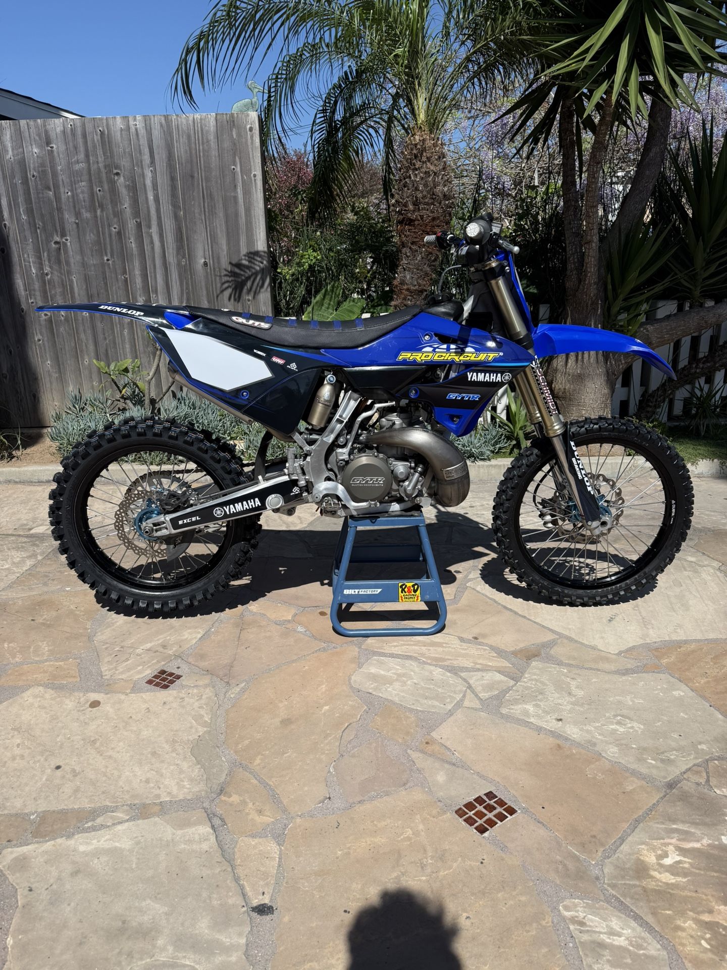 2022 yz 250 with clear title and red sticker assigned Around 45 hours on bike, 15 hours on top end and crank. V force reeds, full pro circuit exhaust, gtyr clutch cover Dubya hubs and excell rims with bulldog spokes Odi bars Schmidt full suspension “ vet pro” settings Front and rear spring changed with full valving for 175 rider New graphics, plastics, tires Bike is taken down cleaned and all prep on oil, filter and areas for greasing every ride. This is NOT roached 2 stroke, this is a very well done 250 ready to ride today. it’s priced well to sell. I ride this with my kids who have started racing recently. It’s set up for all the local so cal tracks. I moved back to a 4 stroke is only reason for selling. This bike is very fast and well set up. This is a monster edition and will come with two sets of original plastic, original un used full exhaust system with original front and rear springs for suspension as well as all the current suspension settings.