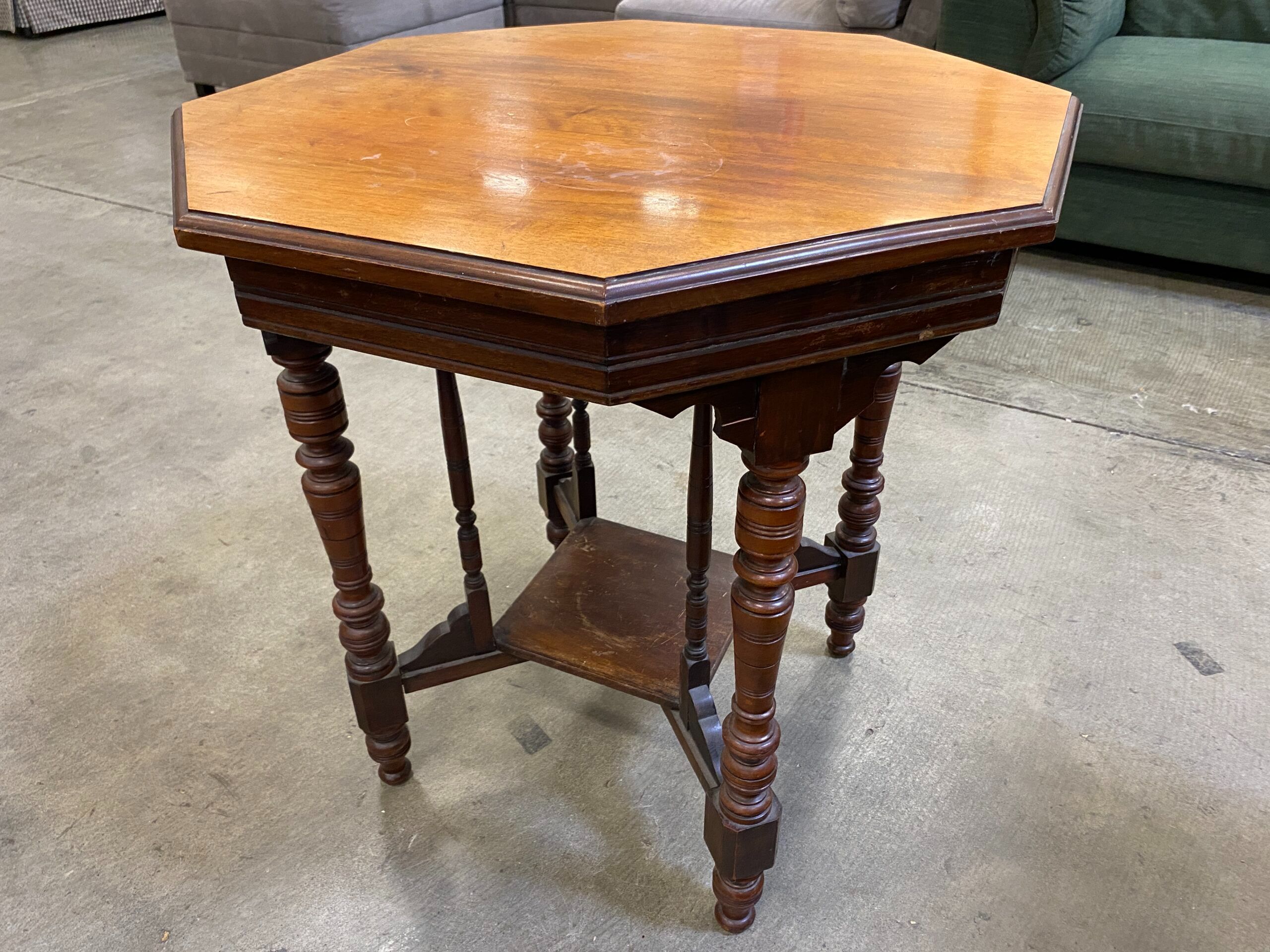 Wooden Octagonal 2 Tier Side Table with Turned Spindle Legs