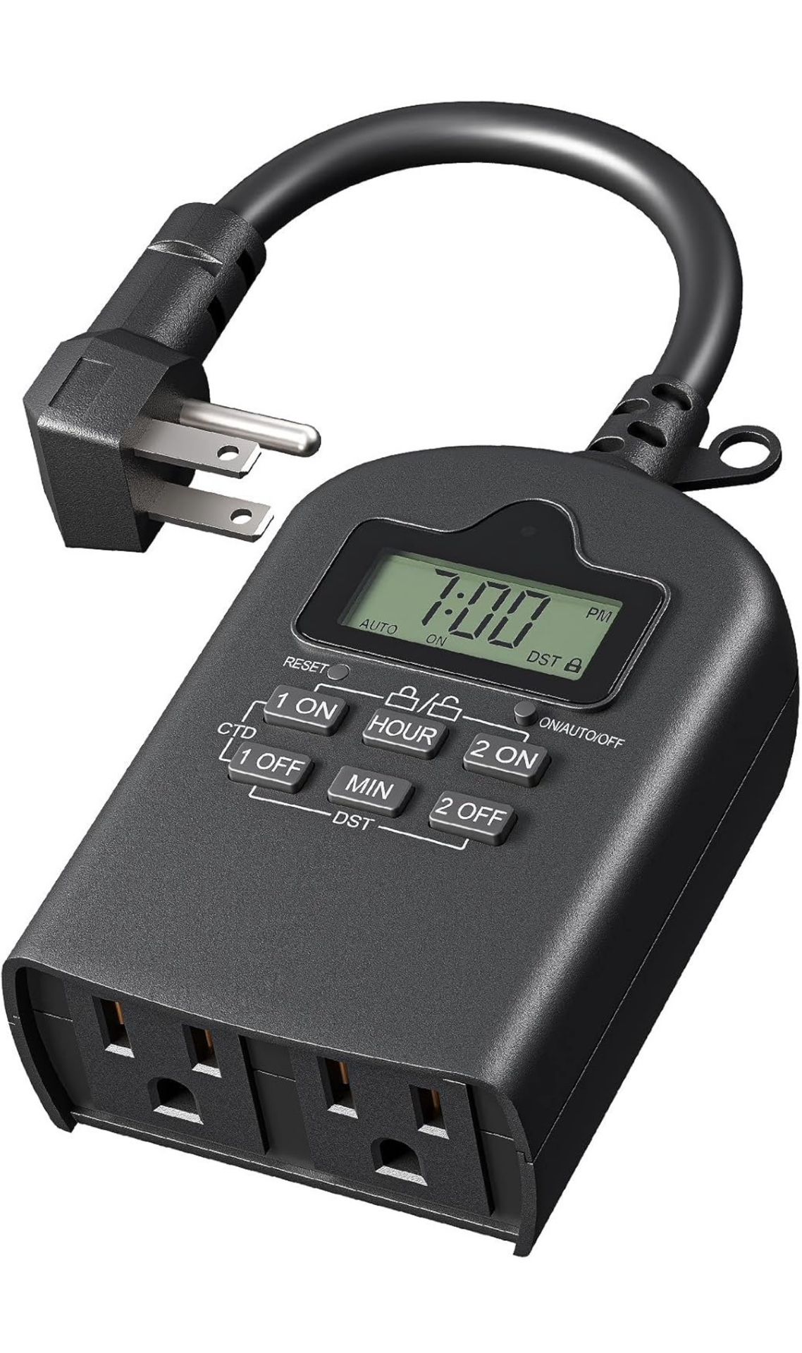 DEWENWILS Outdoor Timer Outlet Waterproof, Outdoor Digital Timer for Lights, Programmable with 2 Grounded Outlets, for Home and Garden, Christmas, 15A