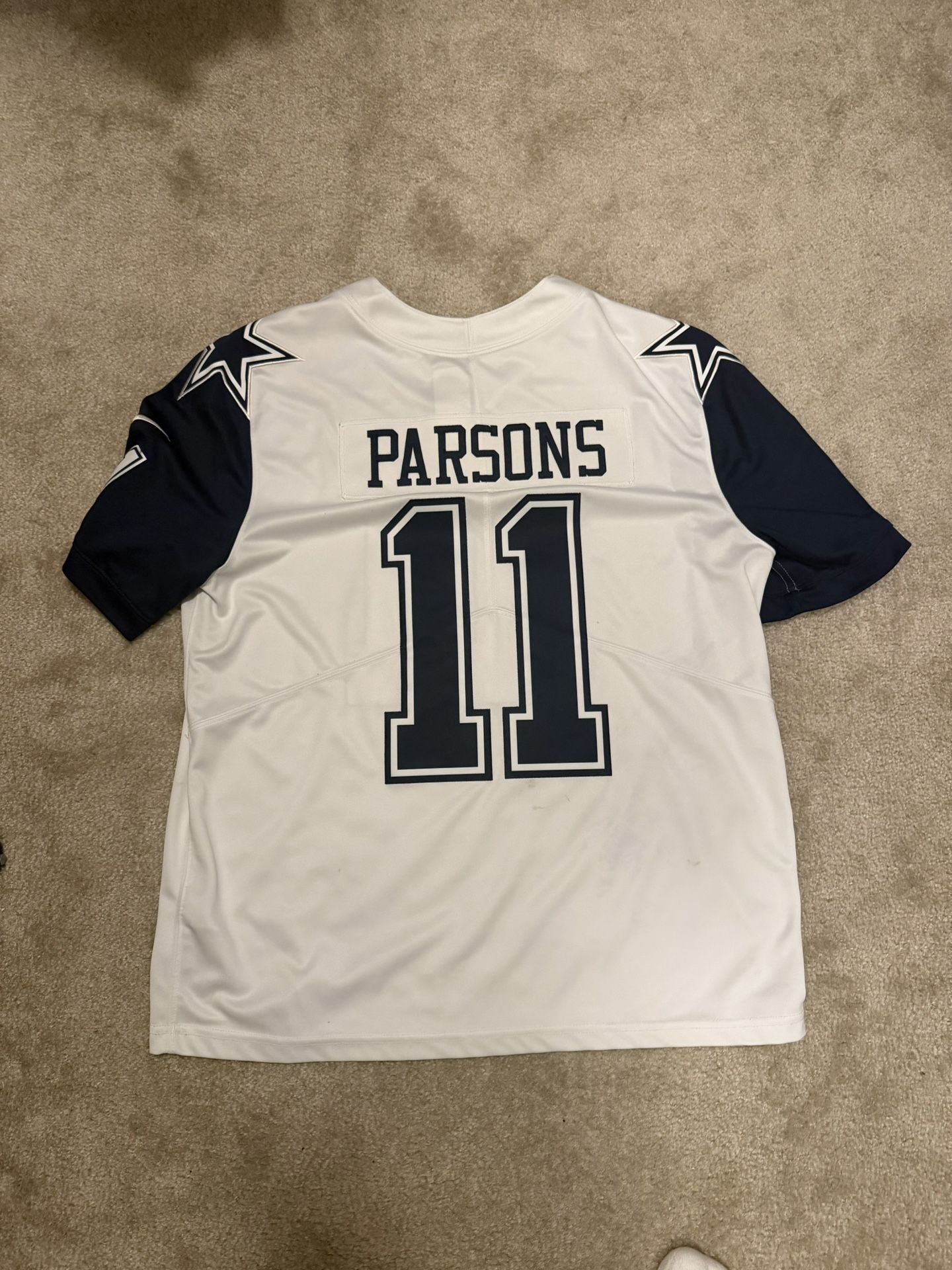 One brand new Micah Parsons white jersey, two rarely worn NFL issued limited (embroidered) color rush and military Micah Parsons, 2 Ezekiel Elliott rarely worn NFL issued limited jerseys! All sizes XL!! Amazing condition for the ultimate fan or collector! 5 jerseys in total! Shipping available. $750 value!!!